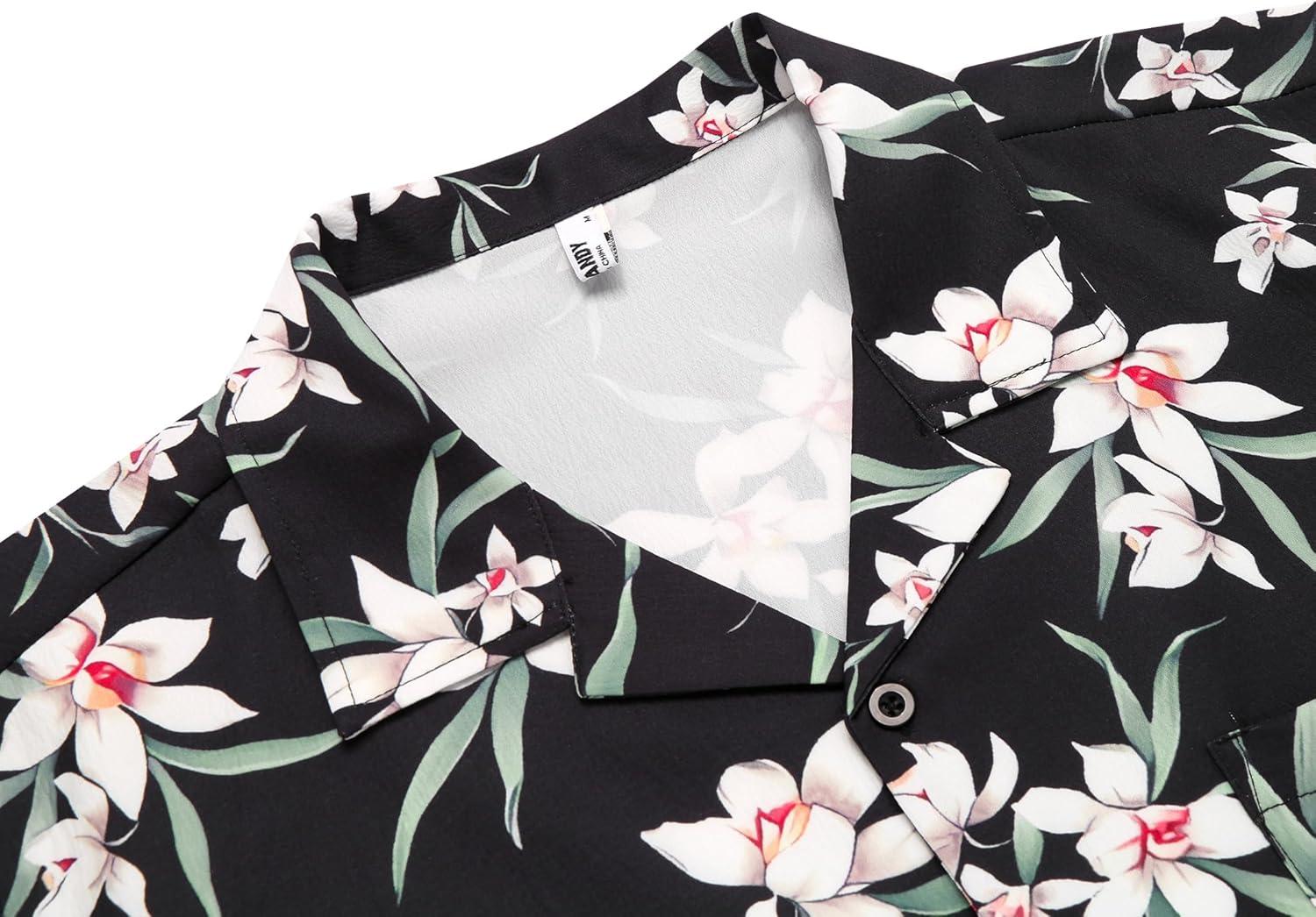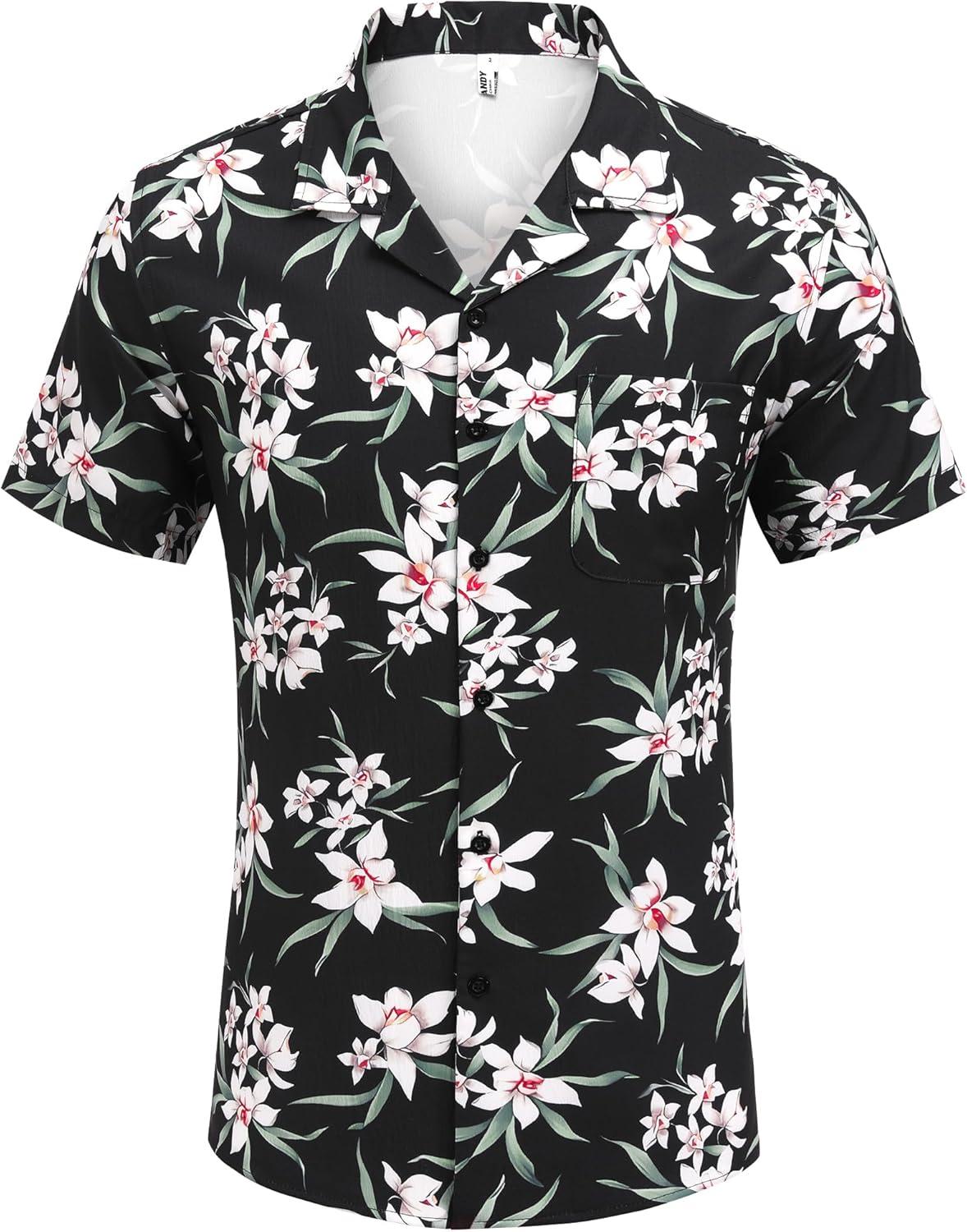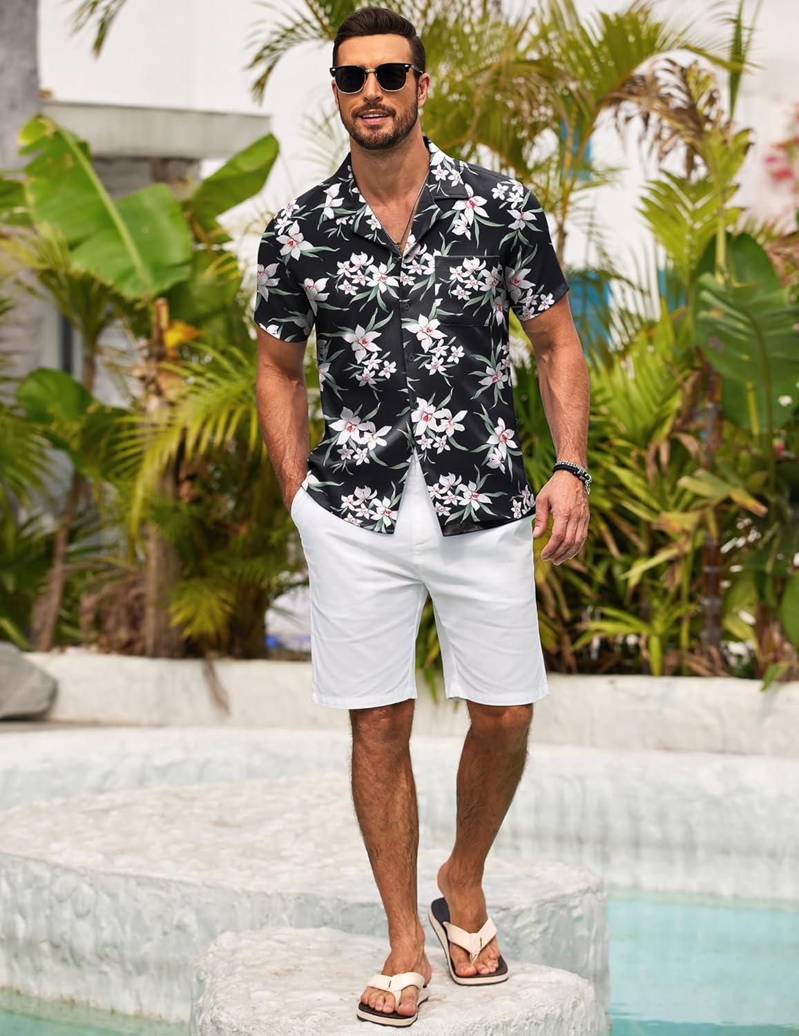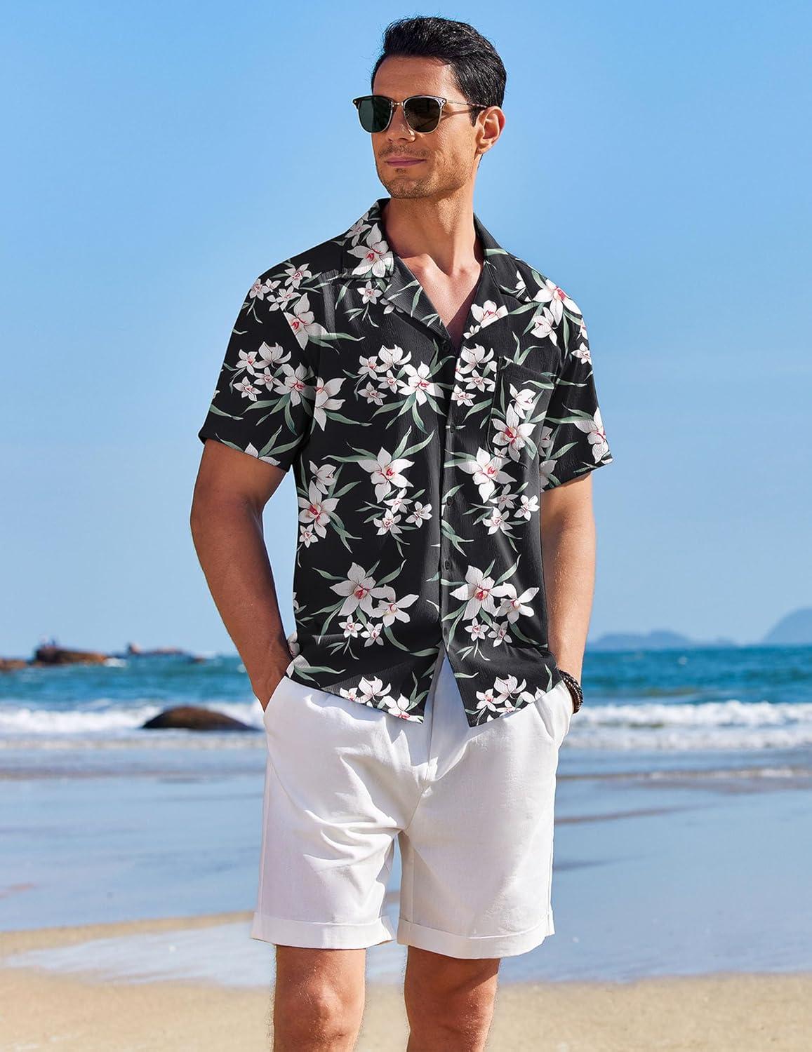 COOFANDY Men’s Casual Button Down Shirts Short Sleeve Summer Beach Shirt Fashion Textured Shirts with Pocket(White Floral-black)