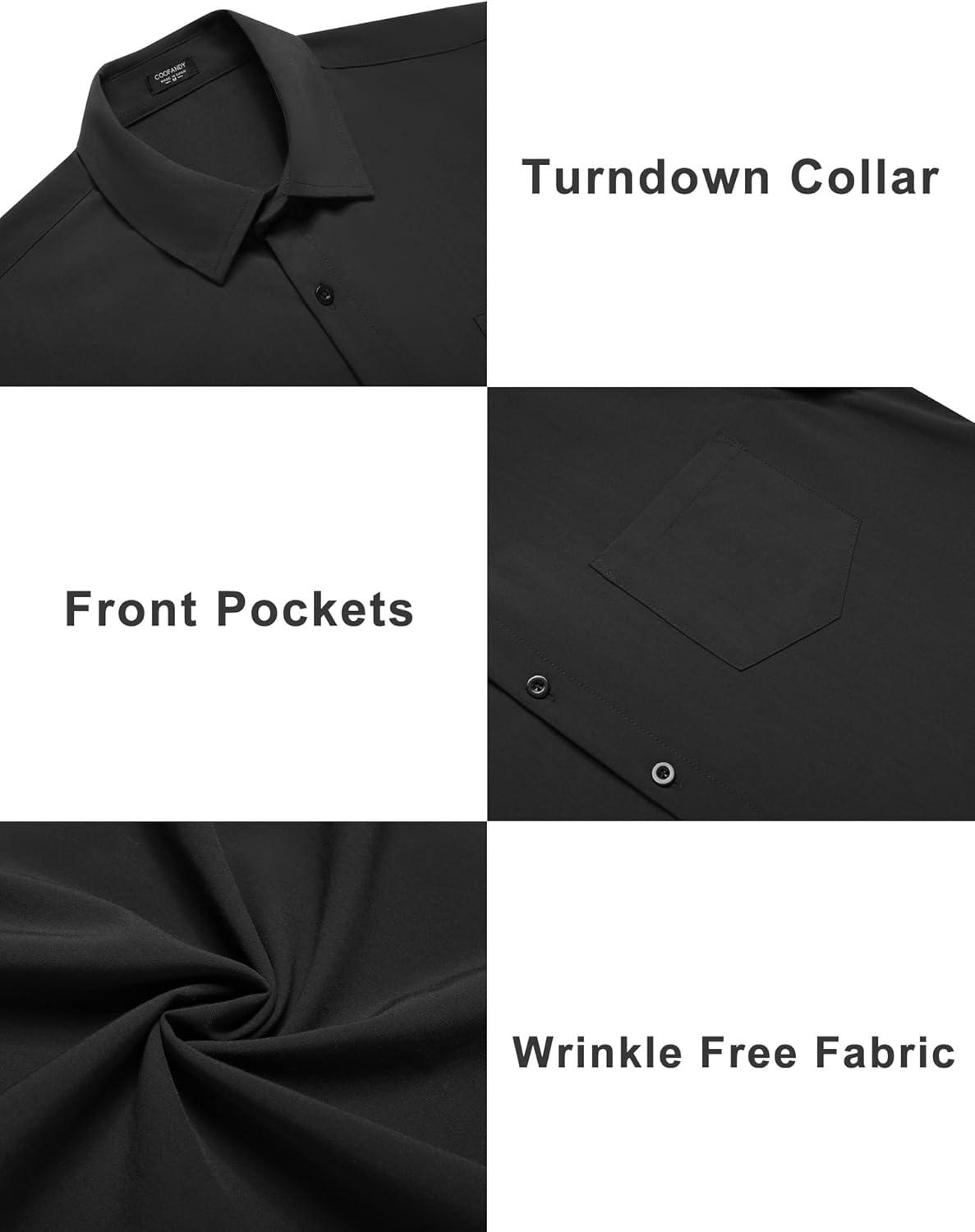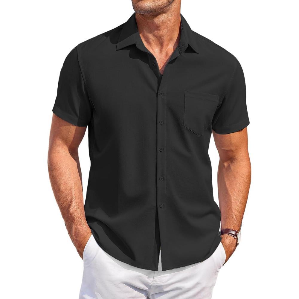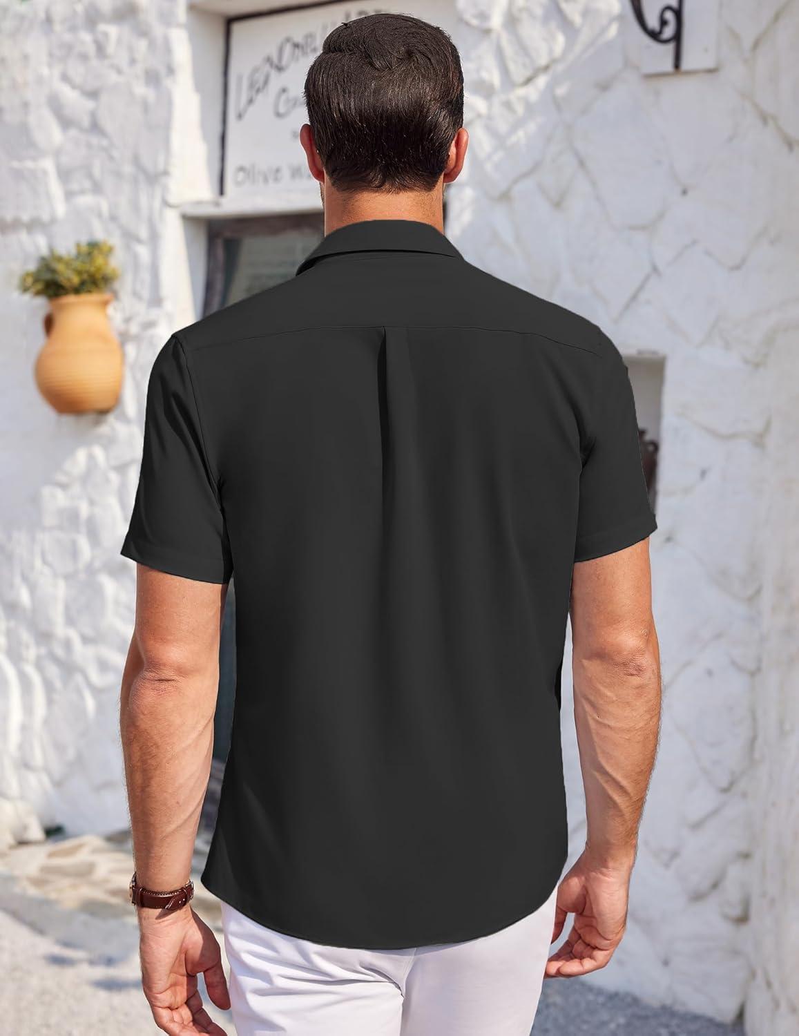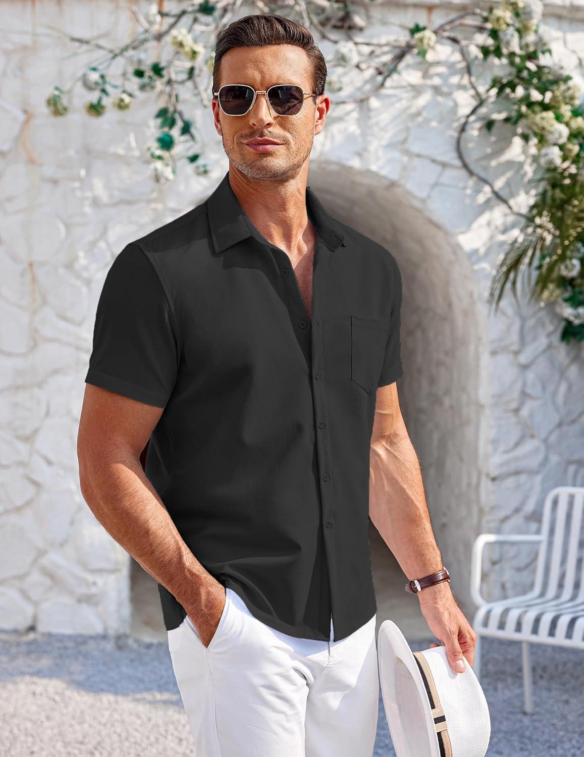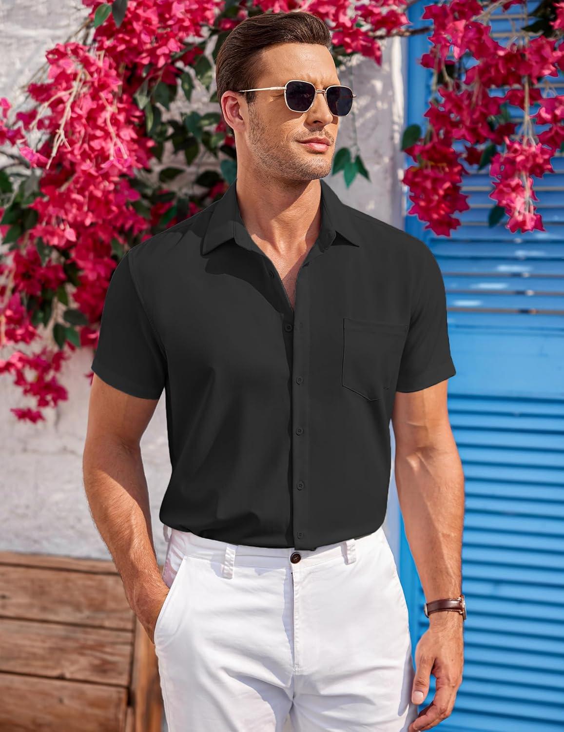 COOFANDY Men’s Casual Button Down Shirts Short Sleeve Summer Beach Vacation Untucked Dress Shirts with Pocket(Black)