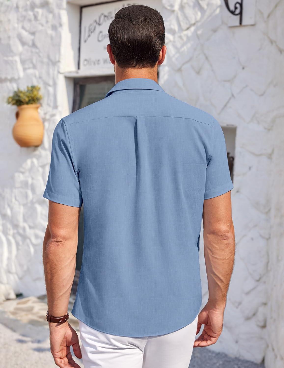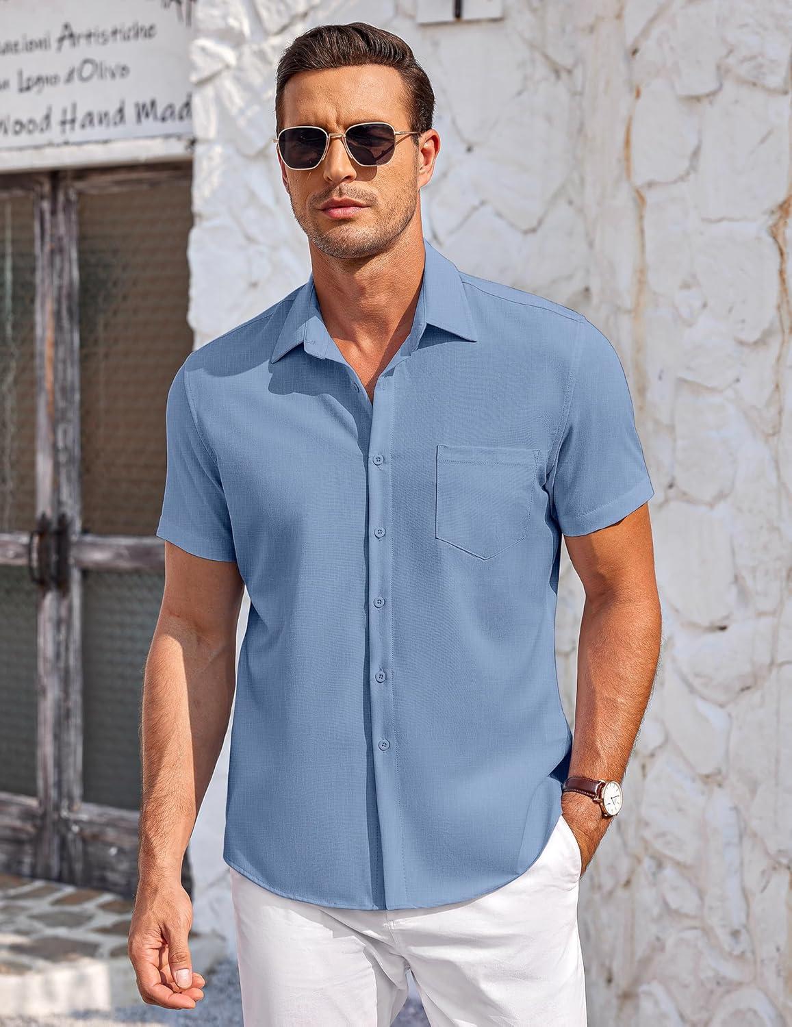 COOFANDY Men’s Casual Button Down Shirts Short Sleeve Summer Beach Vacation Untucked Dress Shirts with Pocket(Royal Blue)