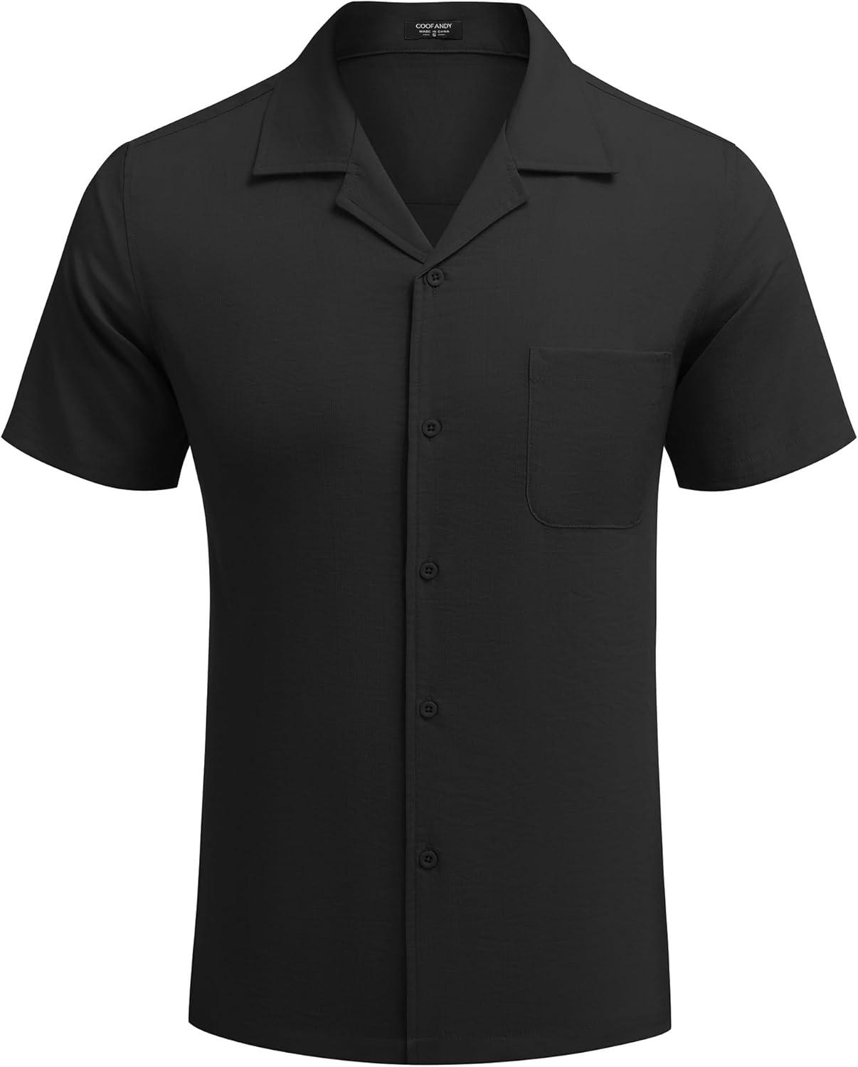 COOFANDY Men’s Casual Button Down Shirts Short Sleeve Summer Cuban Vacation Beach Shirts(Black)