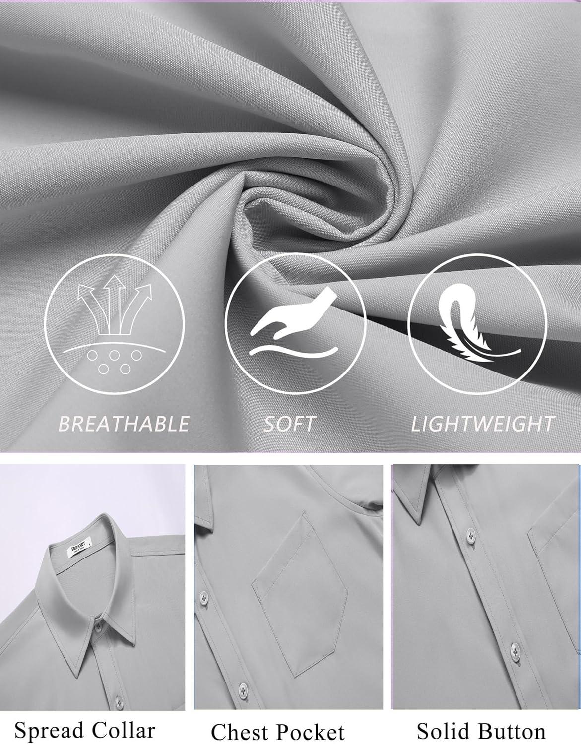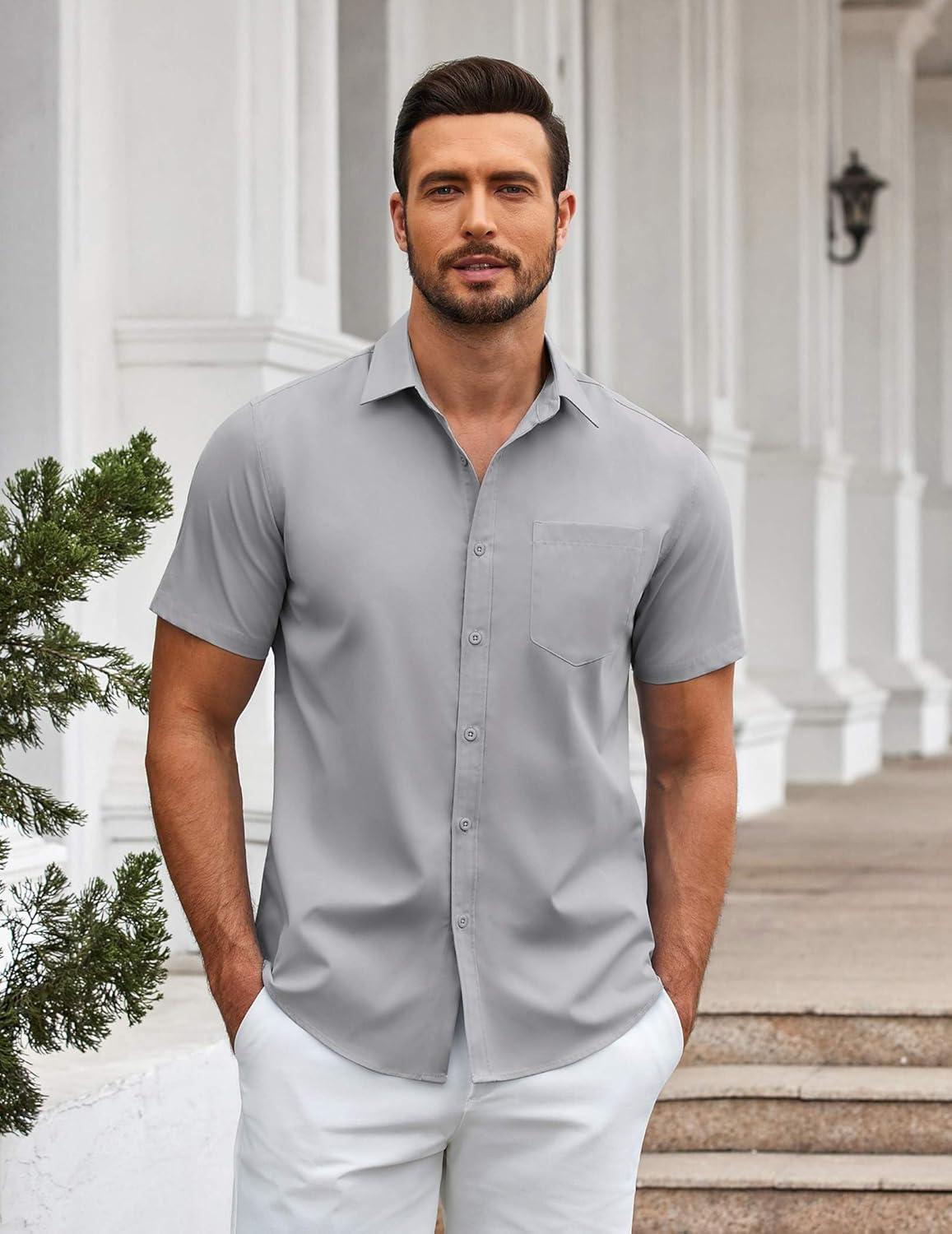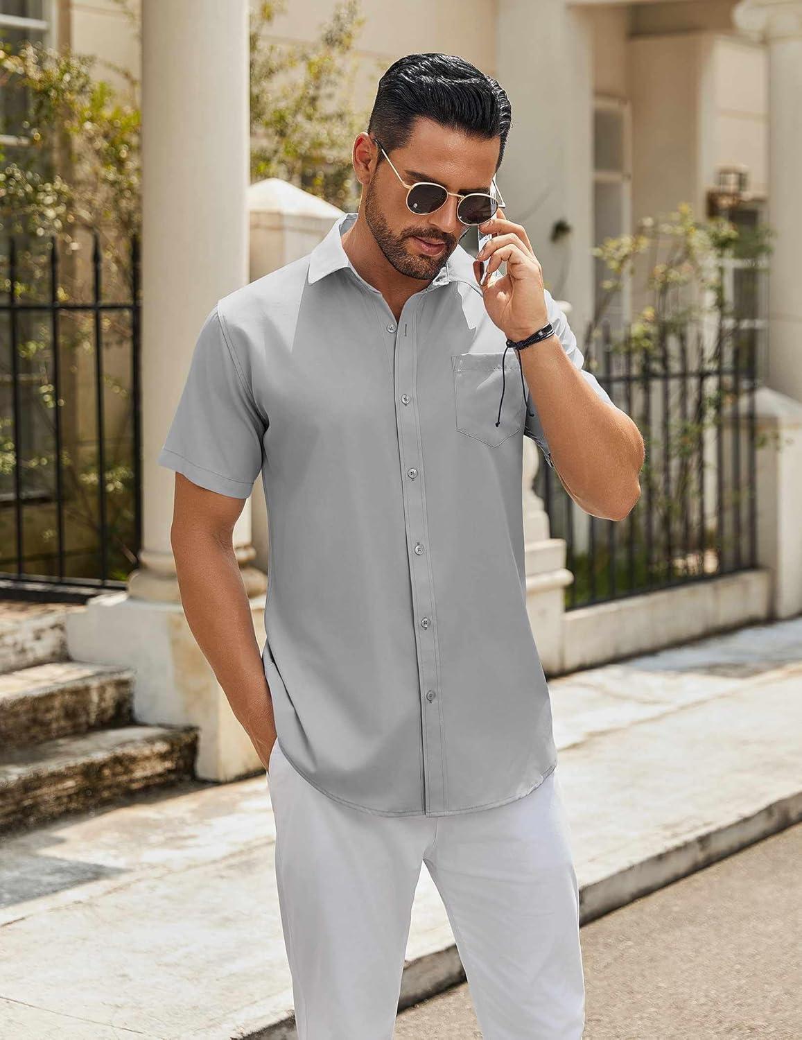 COOFANDY Mens Casual Button Down Shirts Short Sleeve Summer Untucked Dress Shirt with Pocket(Light Grey)