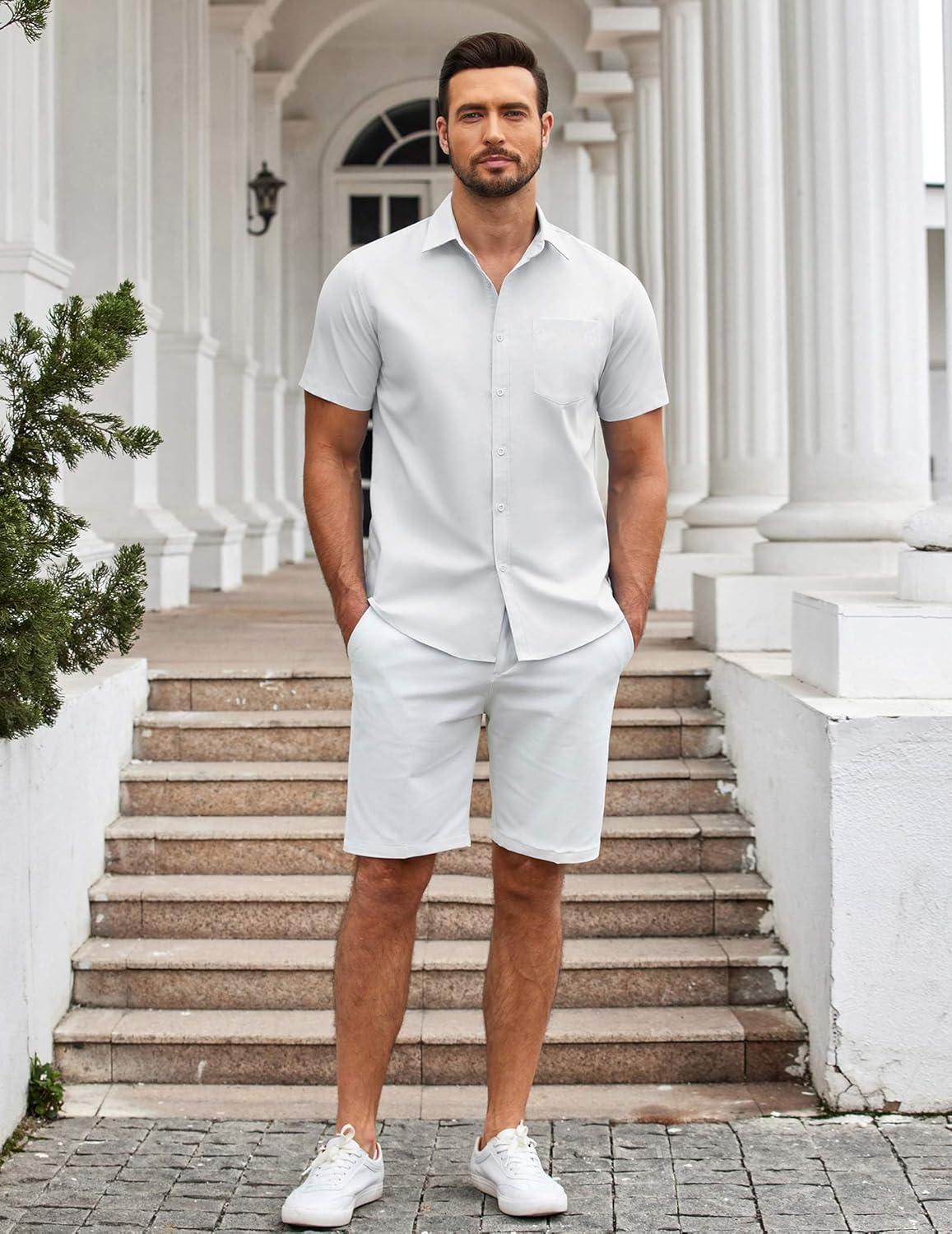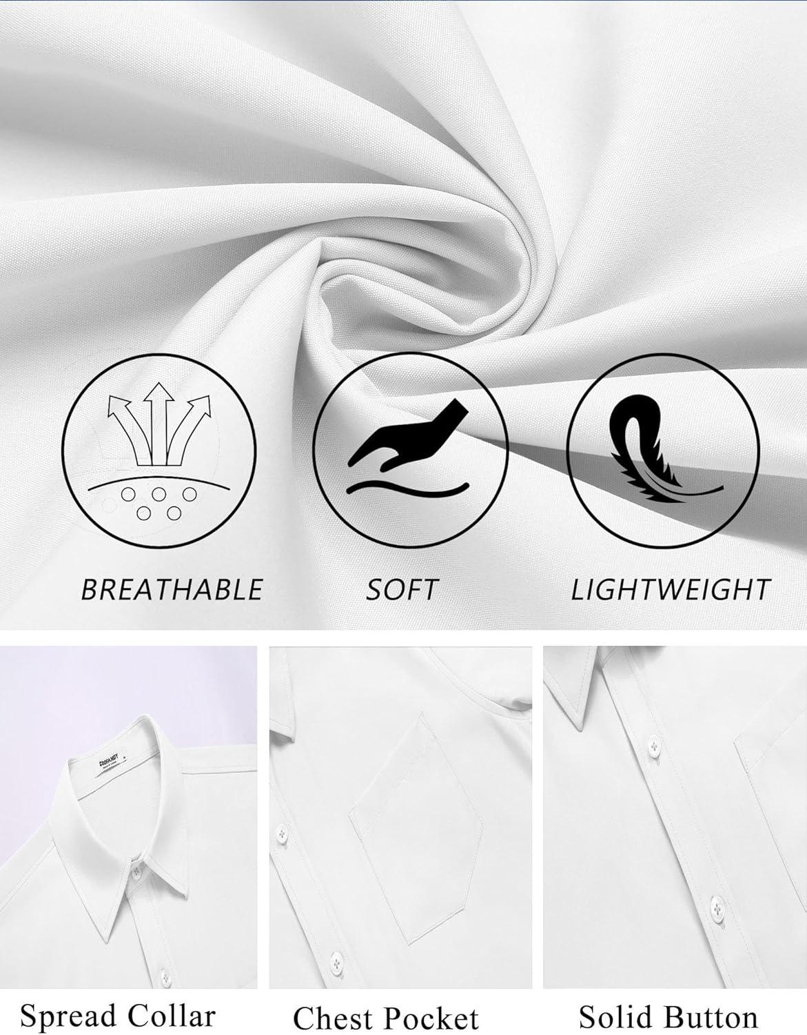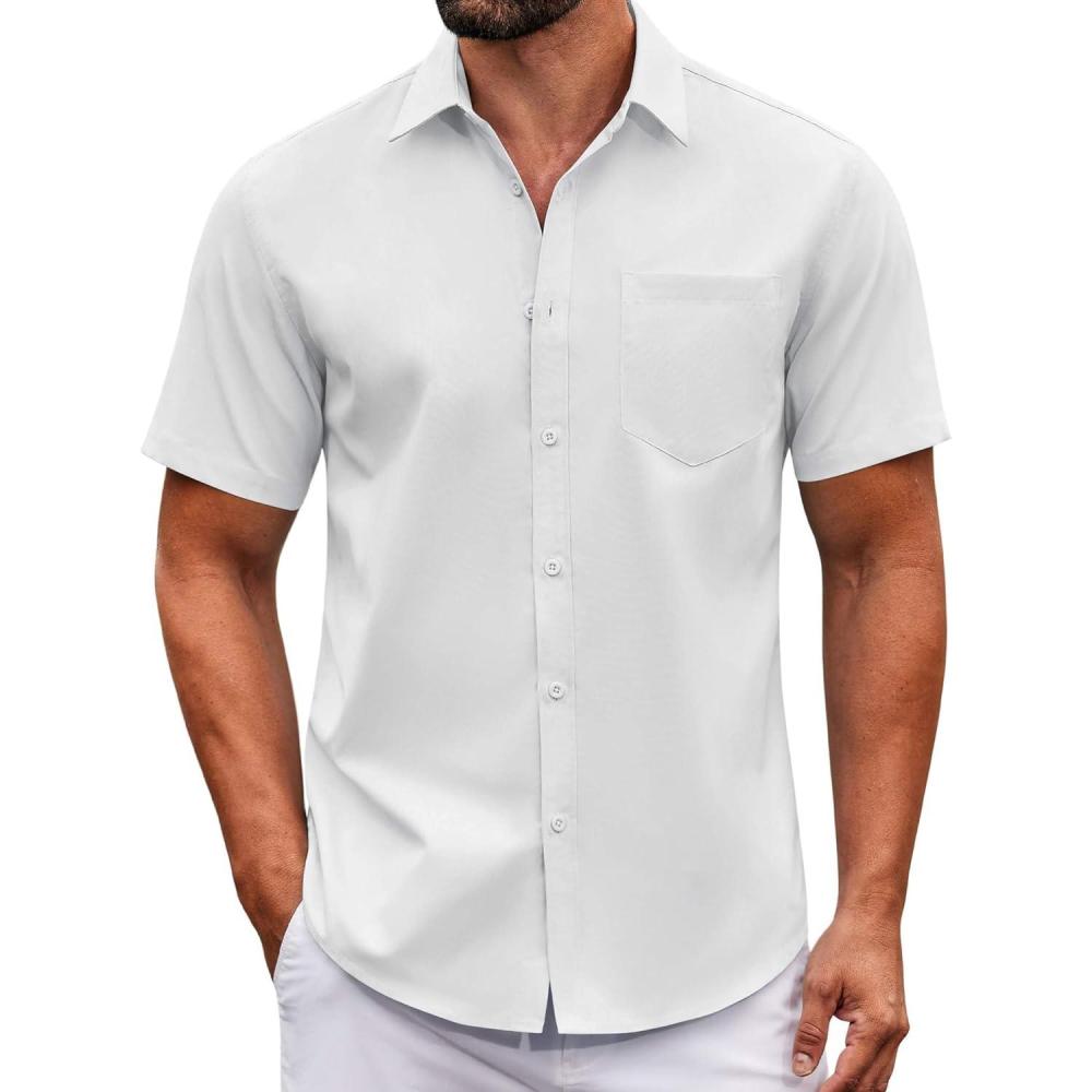 COOFANDY Mens Casual Button Down Shirts Short Sleeve Summer Untucked Dress Shirt with Pocket(White)
