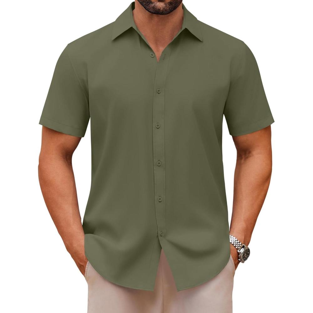 COOFANDY Men’s Casual Button Down Shirts Short Sleeve Summer Untucked Dress Shirts(Army Green)