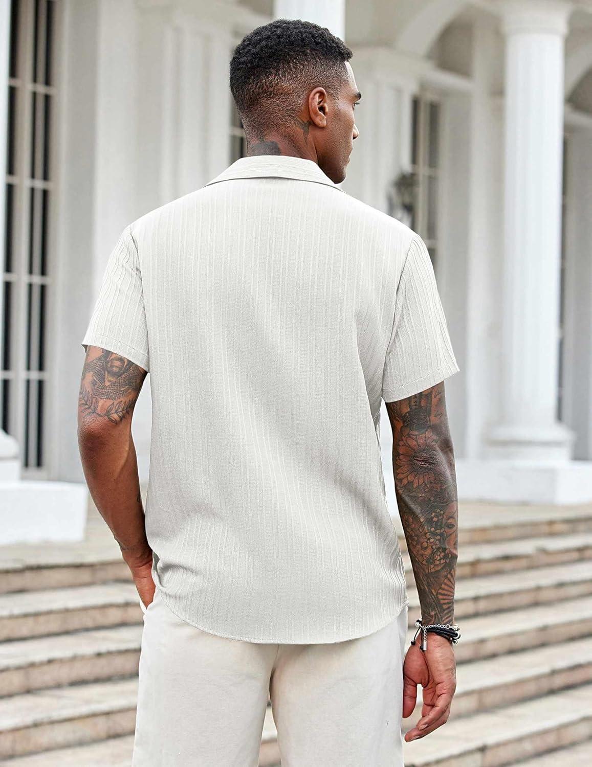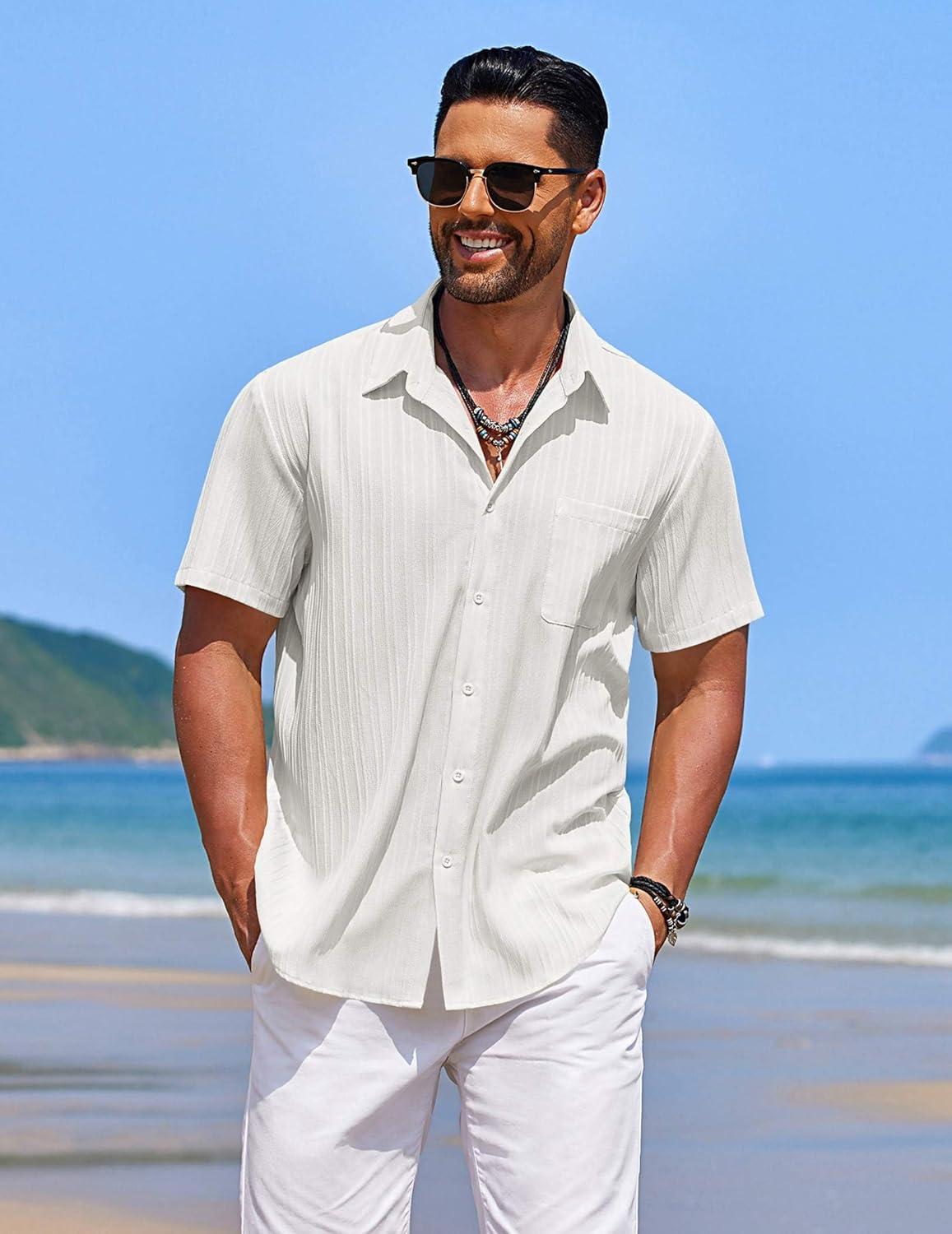COOFANDY Mens Casual Button Down Shirts Short Sleeve Textured Shirt Summer Beach Shirts for Men(White)
