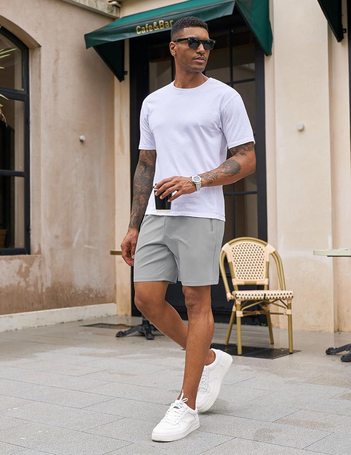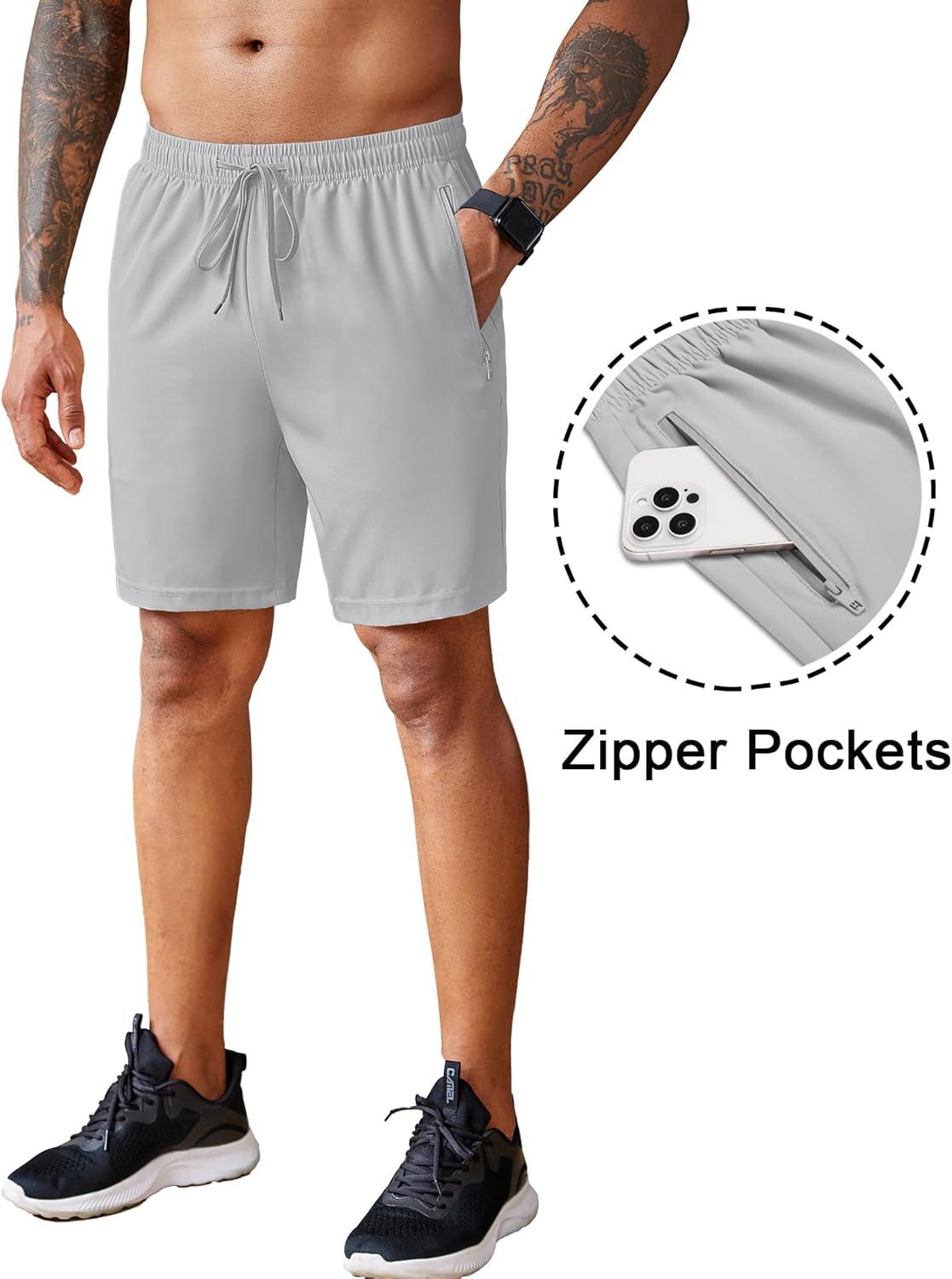 COOFANDY Men’s 2 Pack Workout Gym Shorts 7 Inch / 5 Inch Athletic Shorts Lightweight Casual Jogger Short with Zipper Pockets(3 Pack:grey/Khaki/Black)