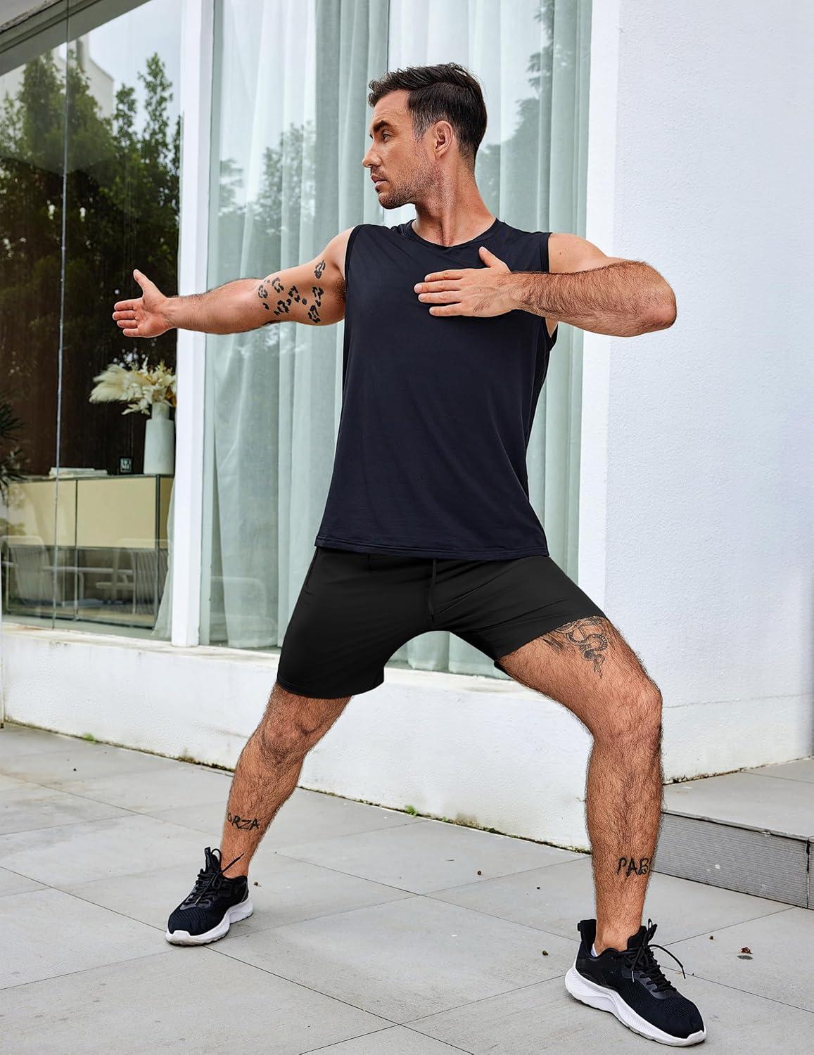 COOFANDY Men’s 2 Pack Workout Gym Shorts 7 Inch / 5 Inch Athletic Shorts Lightweight Casual Jogger Short with Zipper Pockets(Black / Wine Red)