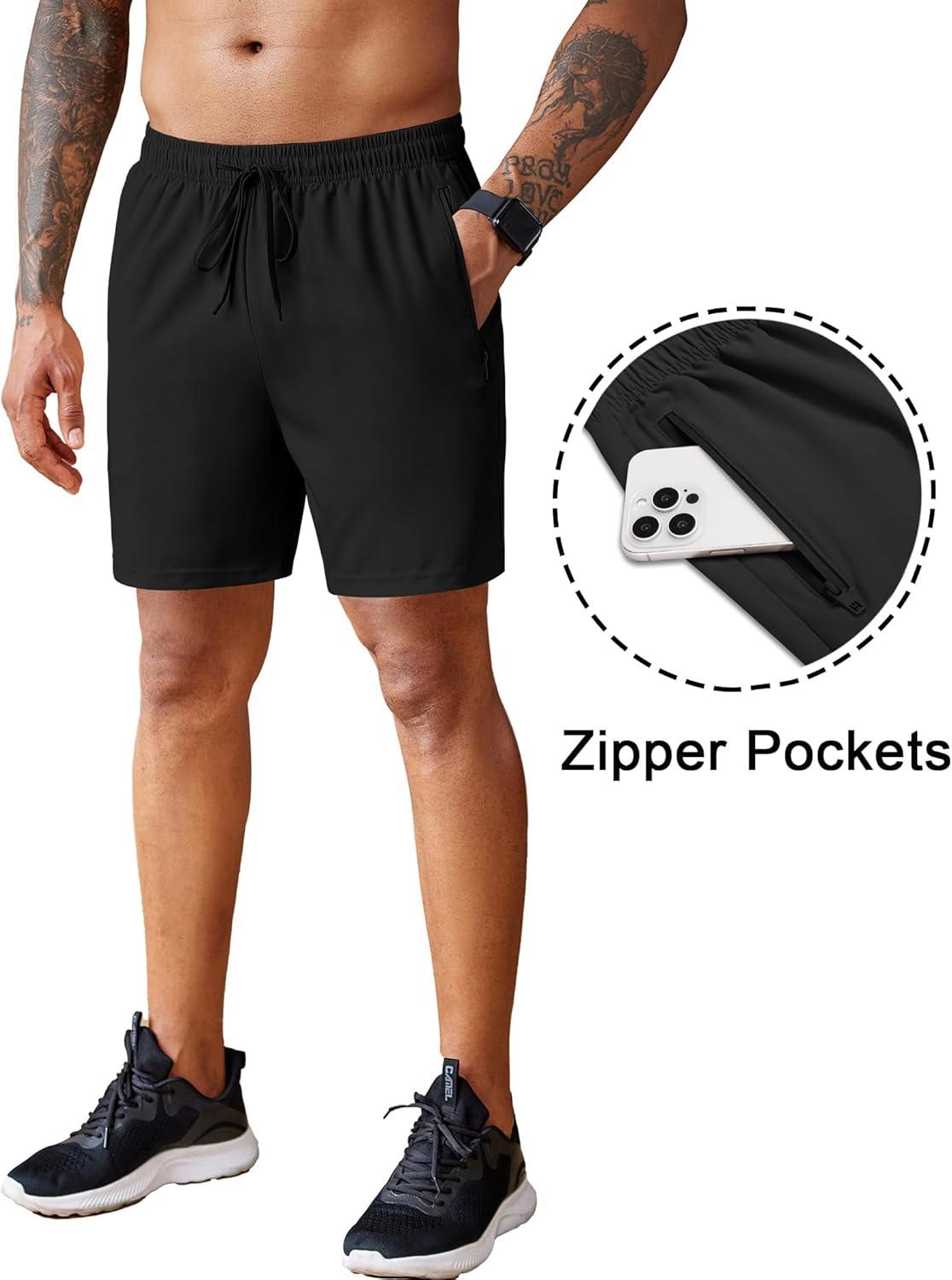 COOFANDY Men’s 2 Pack Workout Gym Shorts 7 Inch / 5 Inch Athletic Shorts Lightweight Casual Jogger Short with Zipper Pockets(1 Dark Khaki)