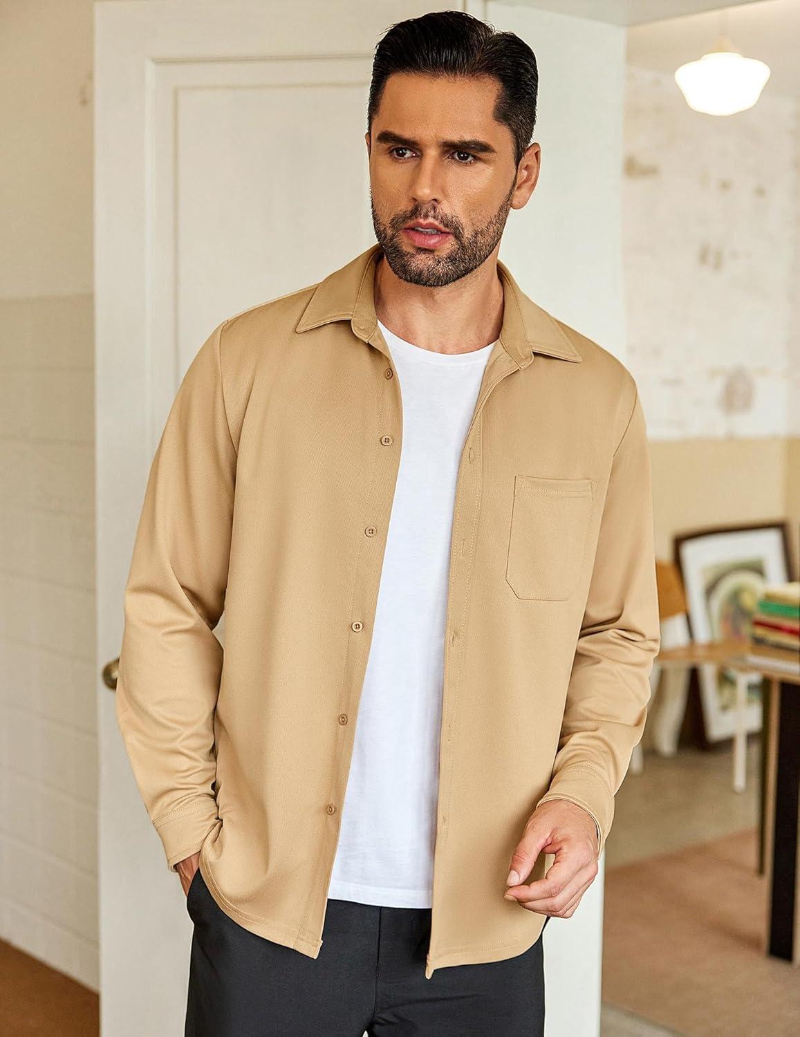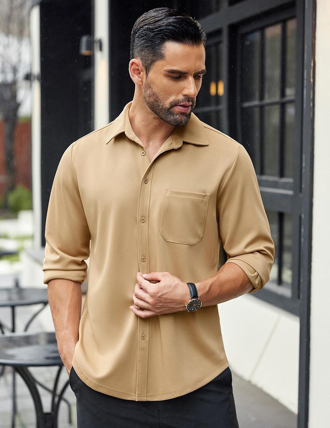 COOFANDY Mens Long Sleeve Casual Button Down Shirt Wrinkle Free Untucked Dress Shirts(Khaki)