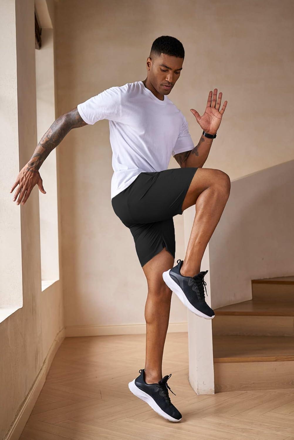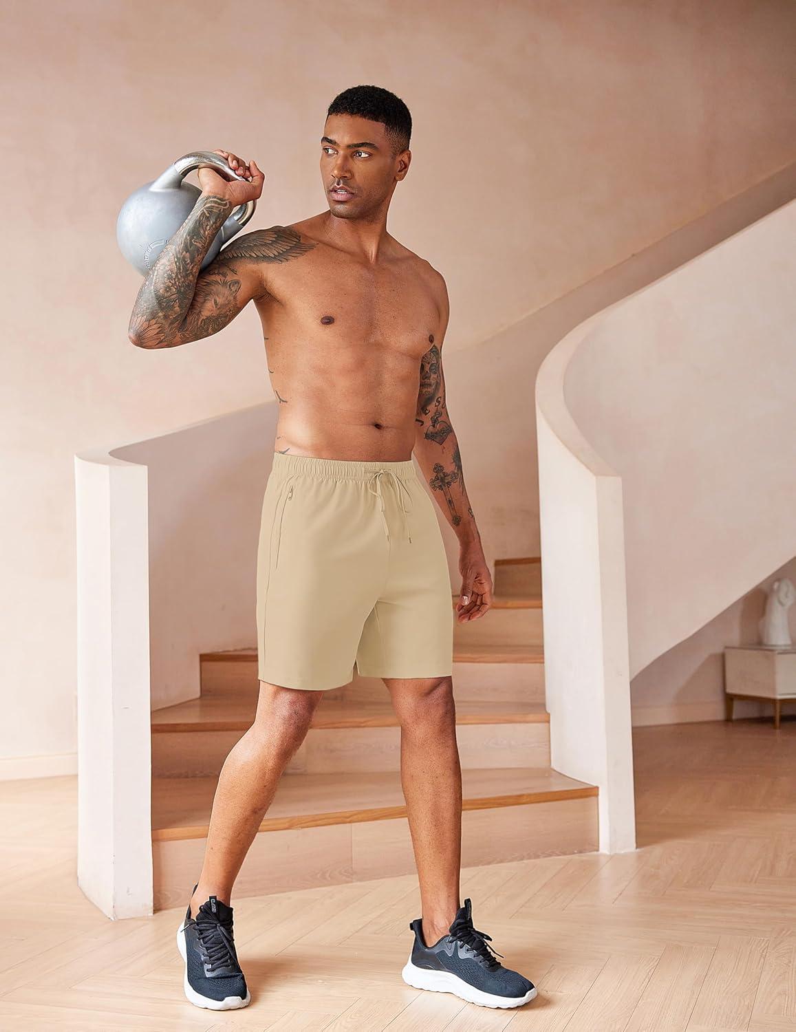 COOFANDY Men’s 2 Pack Workout Gym Shorts 7 Inch / 5 Inch Athletic Shorts Lightweight Casual Jogger Short with Zipper Pockets(3 Pack:grey/Khaki/Black)