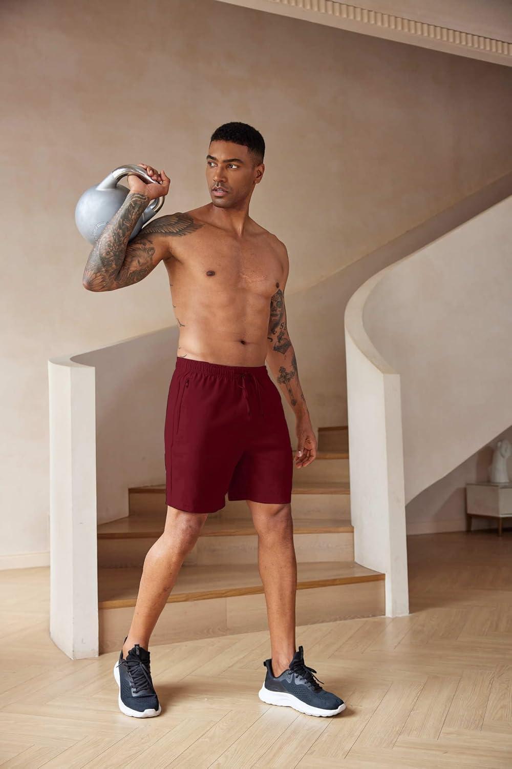 COOFANDY Men’s 2 Pack Workout Gym Shorts 7 Inch / 5 Inch Athletic Shorts Lightweight Casual Jogger Short with Zipper Pockets(Wine Red / Black)