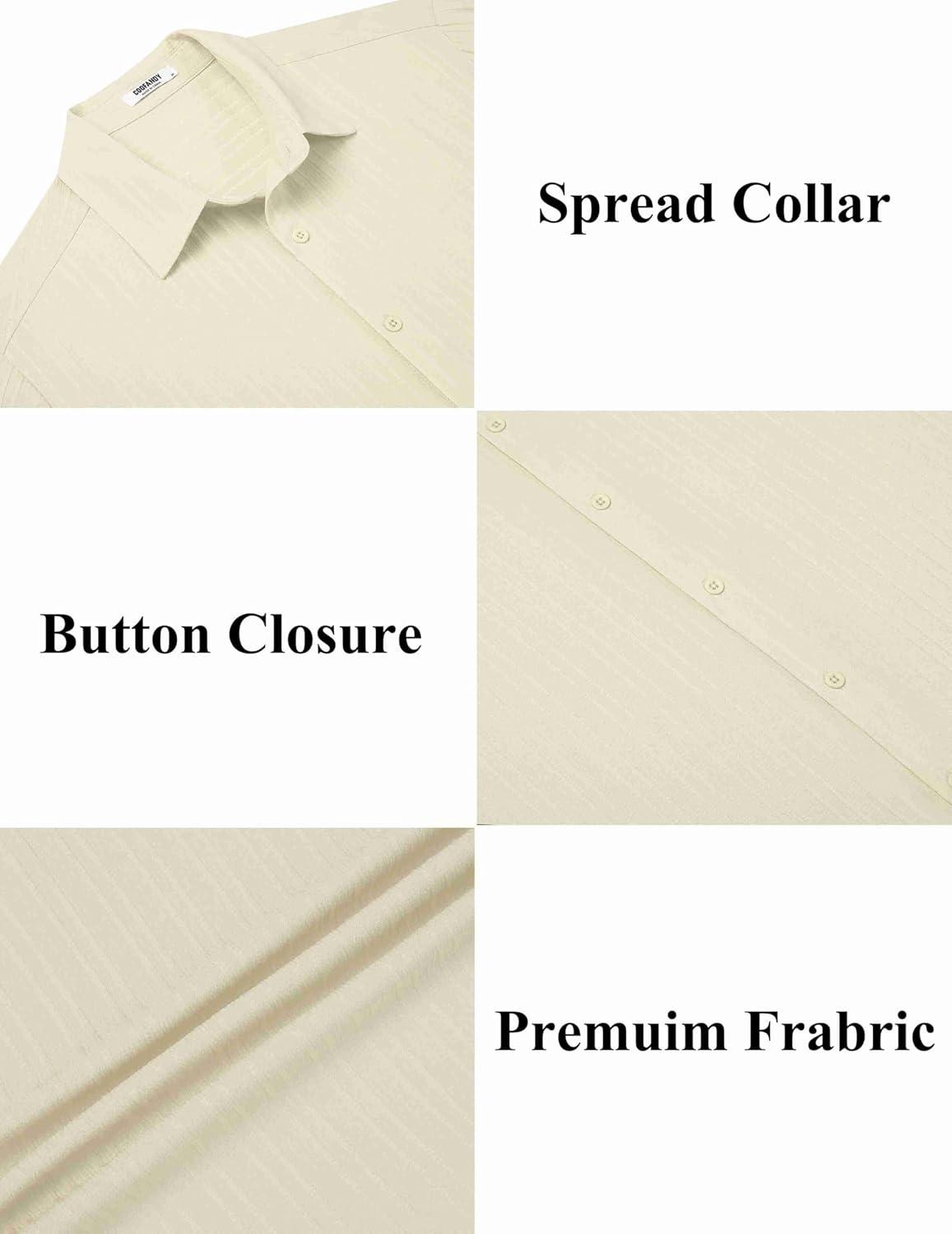 COOFANDY Men’s Casual Button Down Shirts Short Sleeve Textured Summer Beach Shirts(Beige)