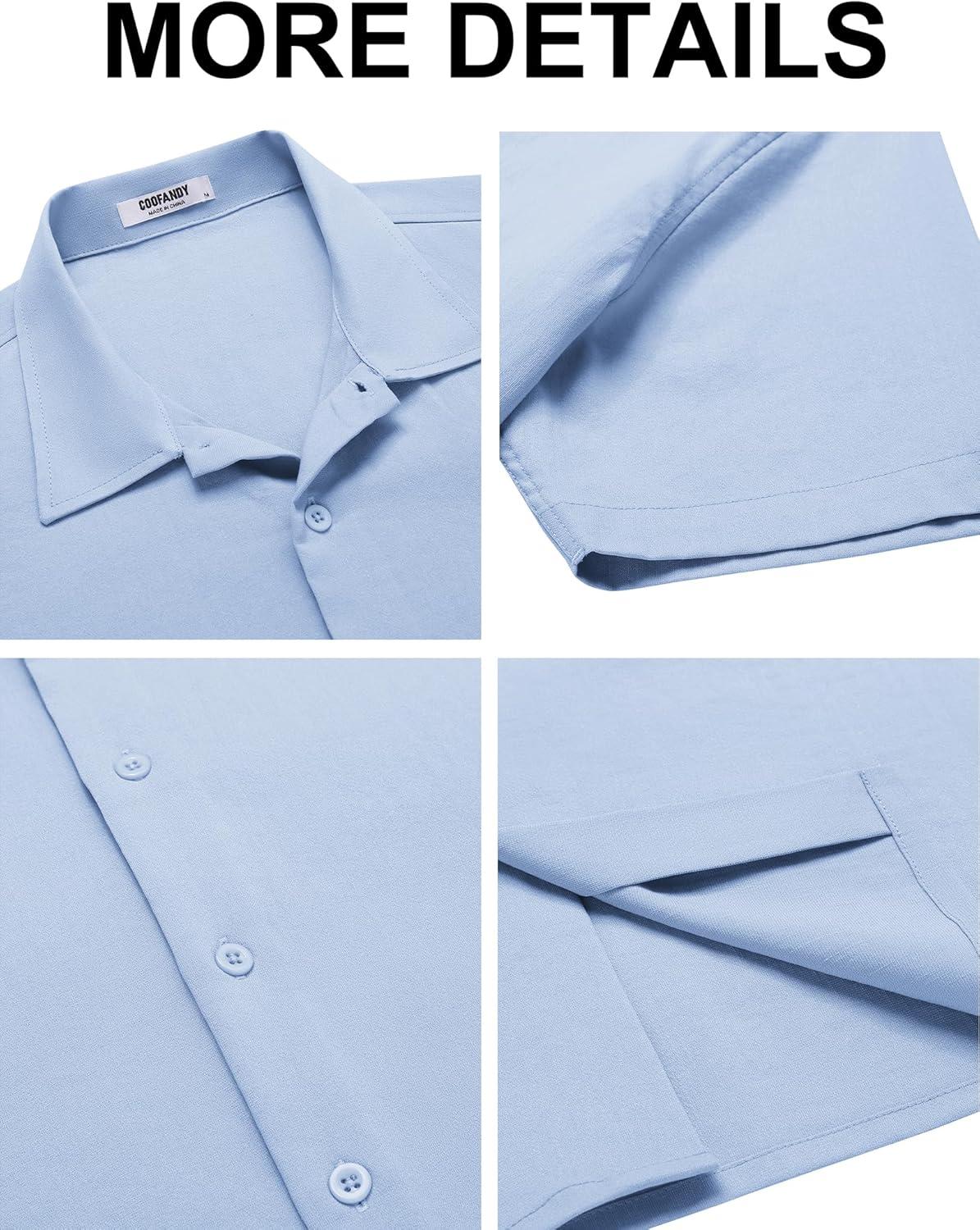 COOFANDY Men’s Casual Button Down Shirts Short Sleeve Wrinkle-Free Summer Beach Wear(Sky Blue)