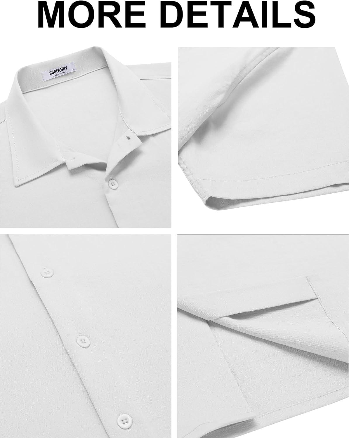 COOFANDY Men’s Casual Button Down Shirts Short Sleeve Wrinkle-Free Summer Beach Wear(White)