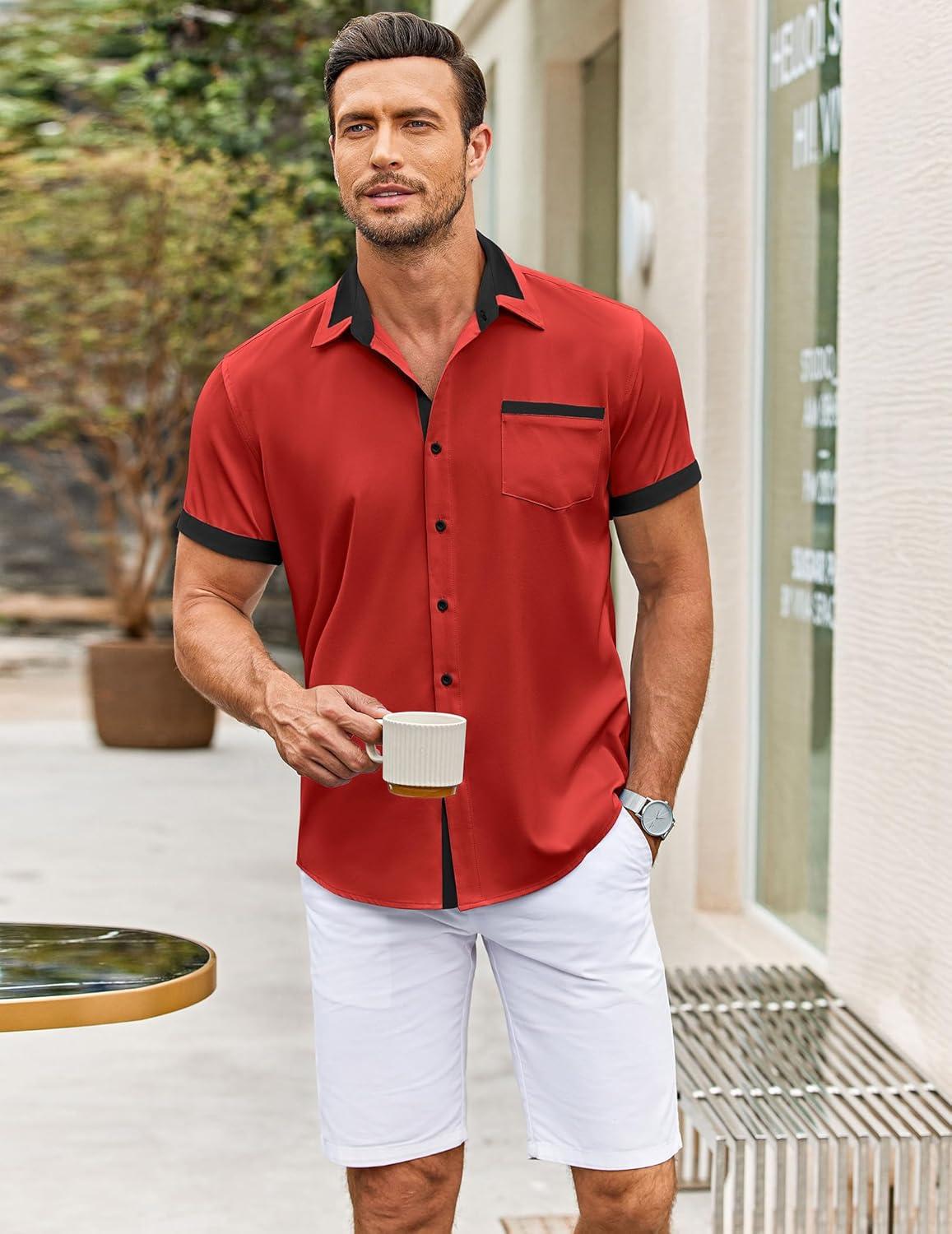 COOFANDY Men’s Casual Button Down Shirts Stretch Short Sleeve Business Dress Shirt with Pocket(Red(black))