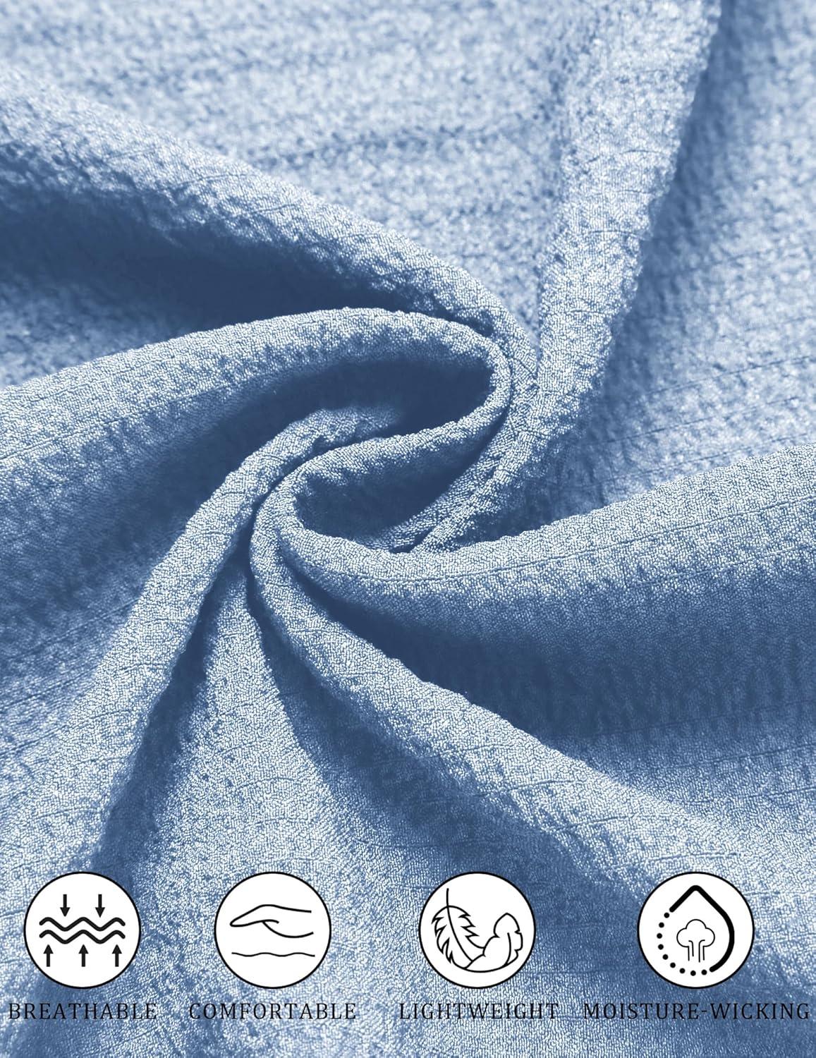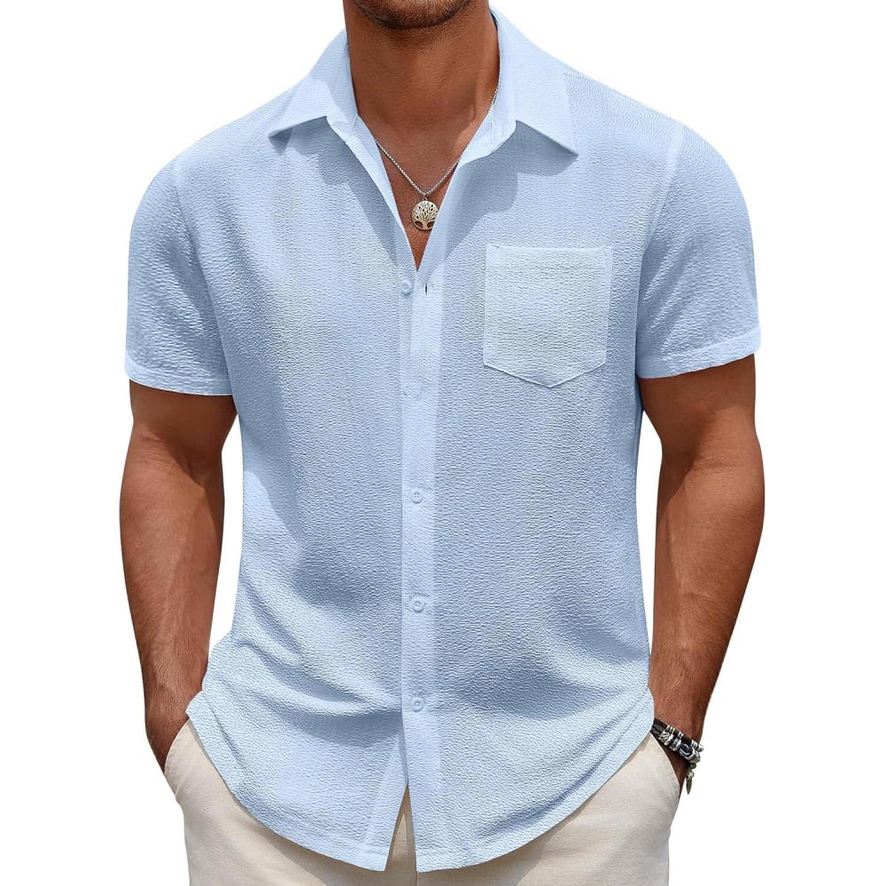 COOFANDY Men’s Casual Button Down Short Sleeve Shirt Textured Summer Beach Vacation Shirt(Light Blue)
