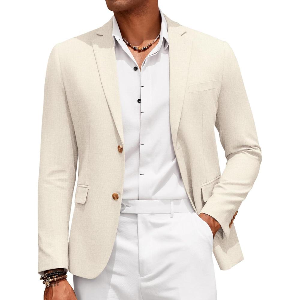 COOFANDY Mens Casual Cotton Linen Blazer Lightweight Linen Sport Coat Two Button Suit Jacket(Beige)
