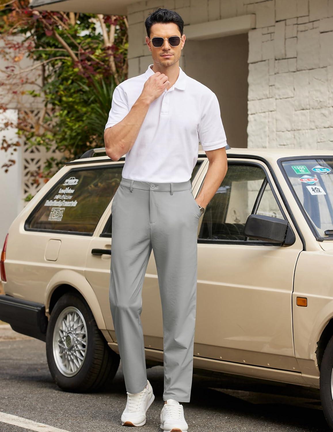 COOFANDY Mens Casual Dress Work Pants Quick Dry Golf Fashion Pants with Pockets 36W32L, Light Grey