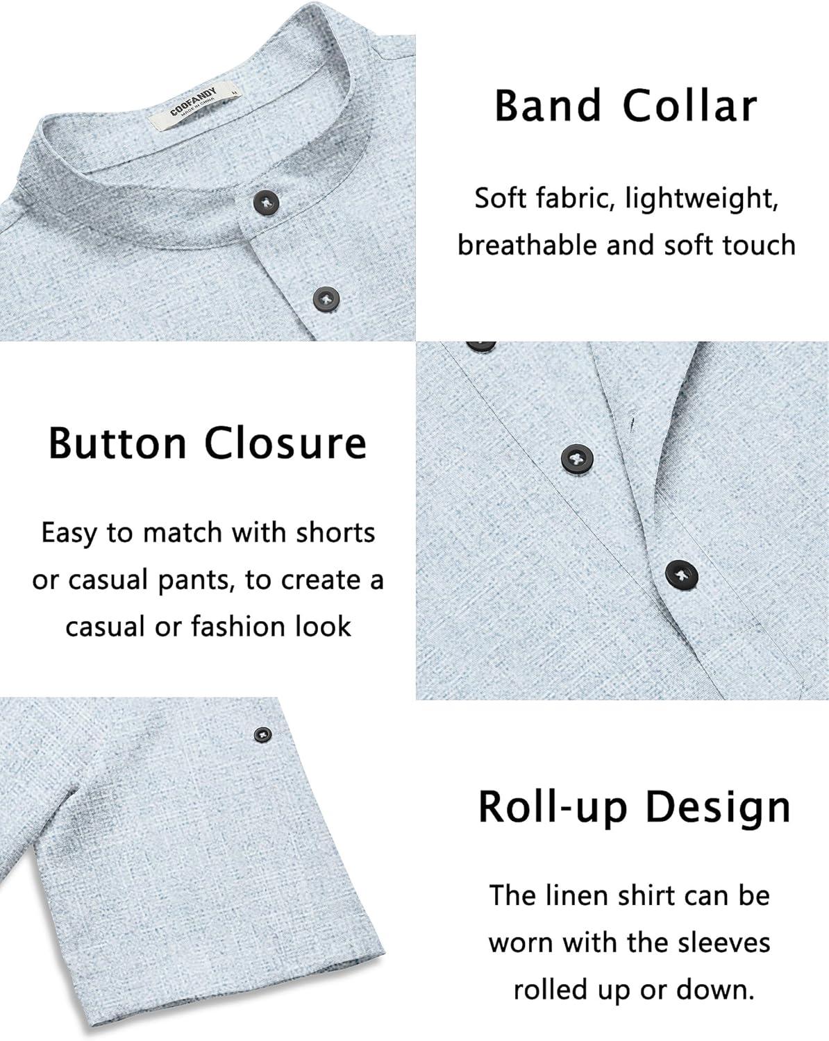 COOFANDY Men’s Casual Henley Shirt Band Collar Short Sleeve Shirt Summer Beach Hippie T-Shirt(Flecking Light Blue)