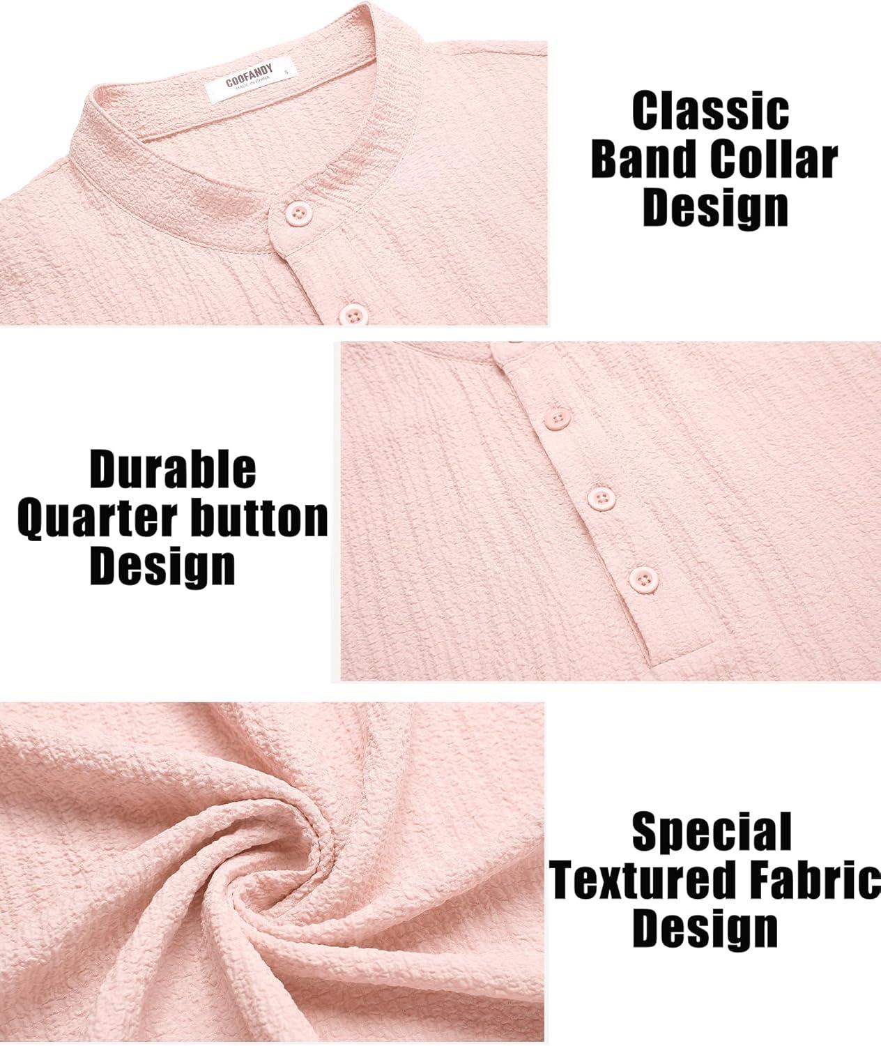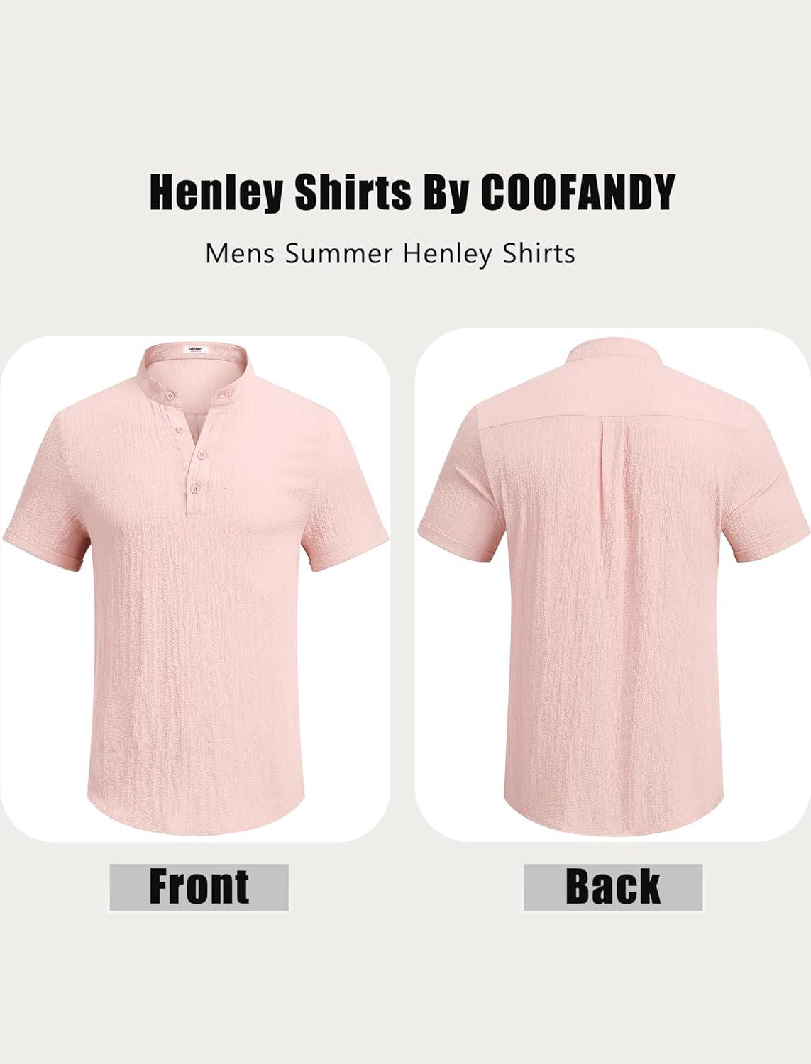 Be the first to review “COOFANDY Men’s Casual Henley Shirt Short Sleeve Band Collar Shirt Summer Beach Hippie Vacation T Shirt with Button(Dark Pink)”