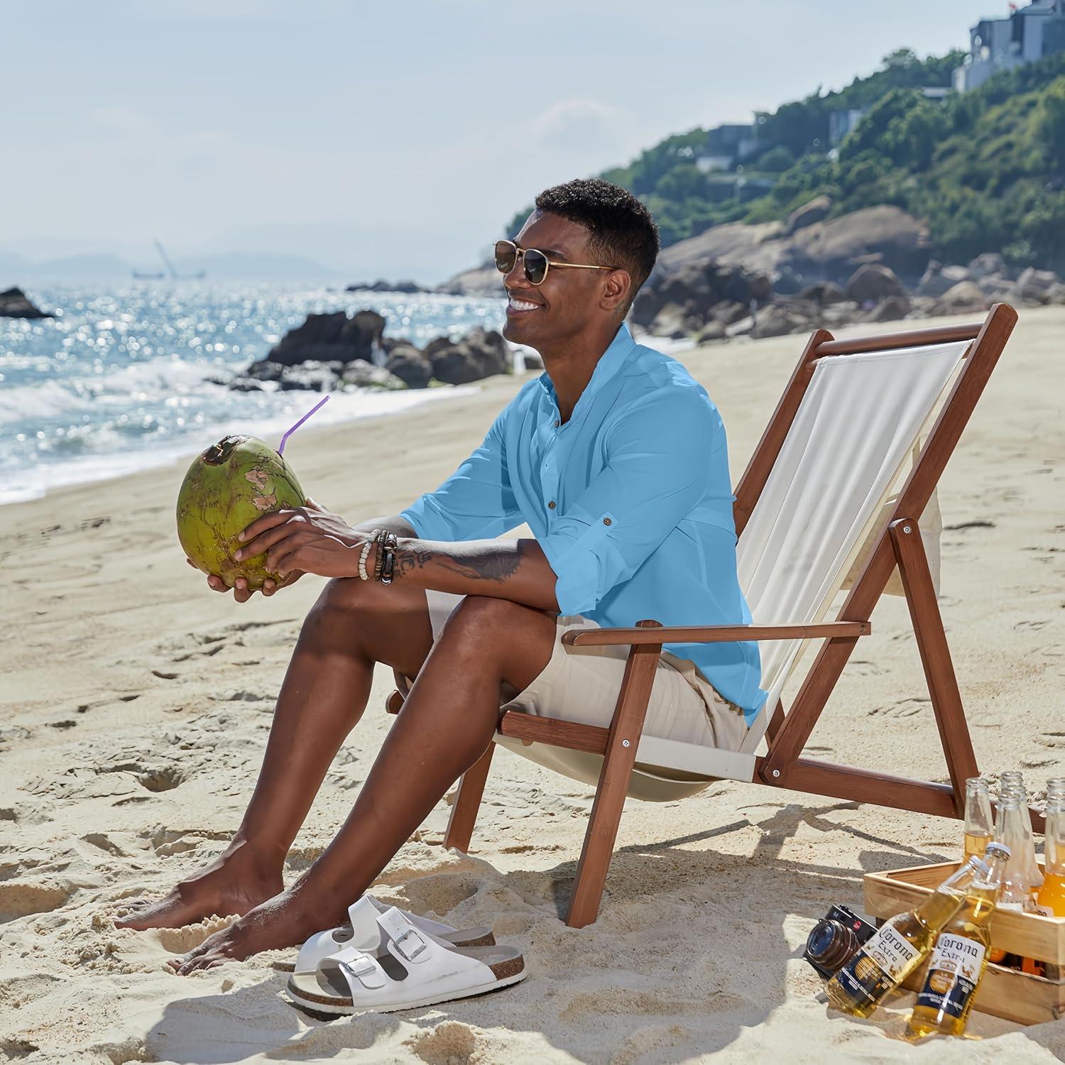 COOFANDY Men’s Linen Shirts Short Sleeve Casual Shirts Button Down Shirt for Men Beach Summer Wedding Shirt(Denim Blue)