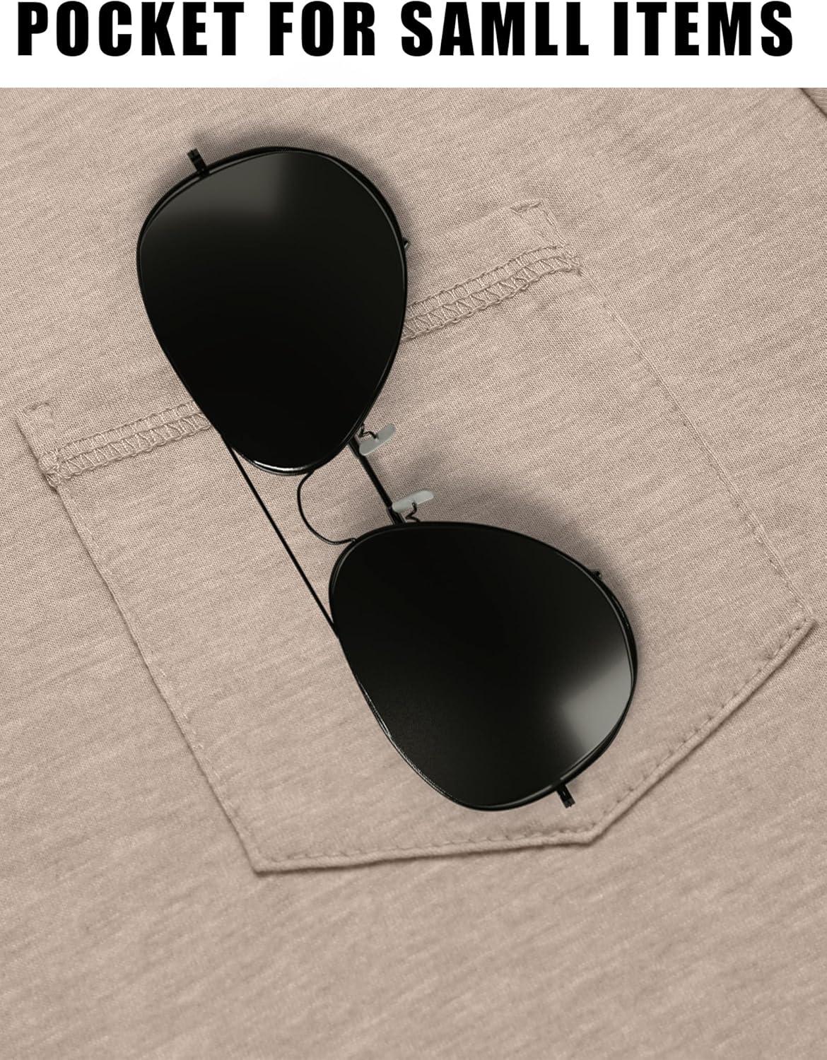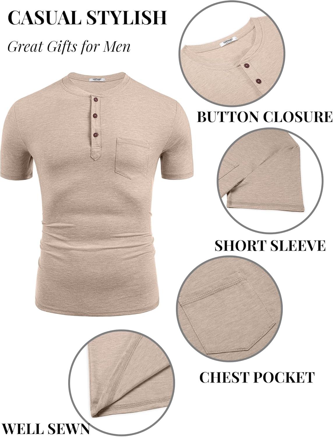 COOFANDY Men’s Casual Henley Shirts Short Sleeve Pocket T-Shirts Lightweight Button Henley Pullover Basic Tees(Khaki)