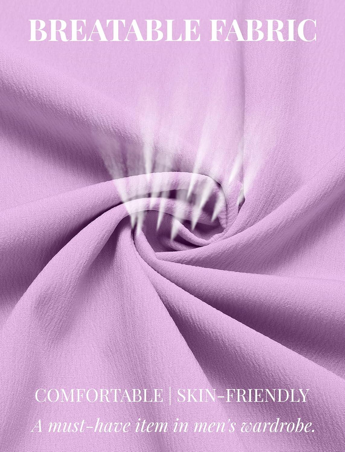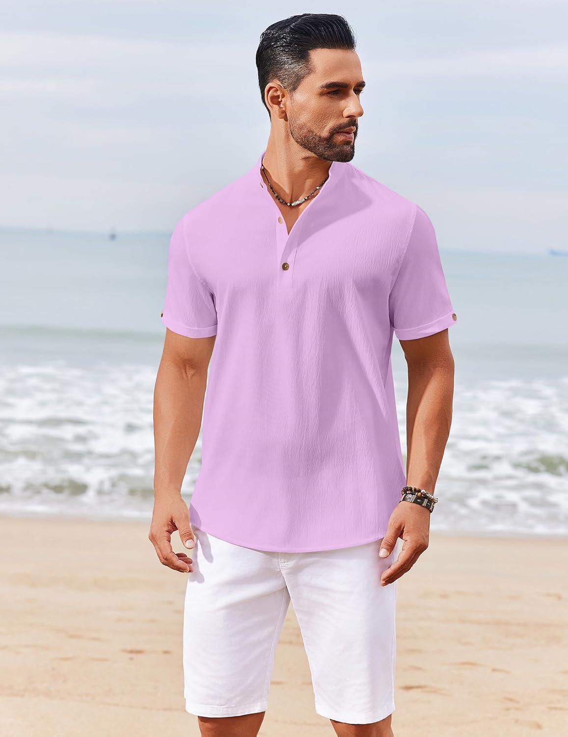 COOFANDY Men’s Casual Henley Shirts Short Sleeve Summer Beach T-Shirts Banded Collar Henleys Button Tee Shirt(Light Purple)