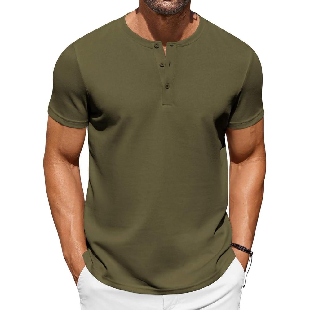 COOFANDY Men’s Casual Henley T-Shirts Summer Short Sleeve Cotton Shirts Basic Button Tee Tops(Army Green)