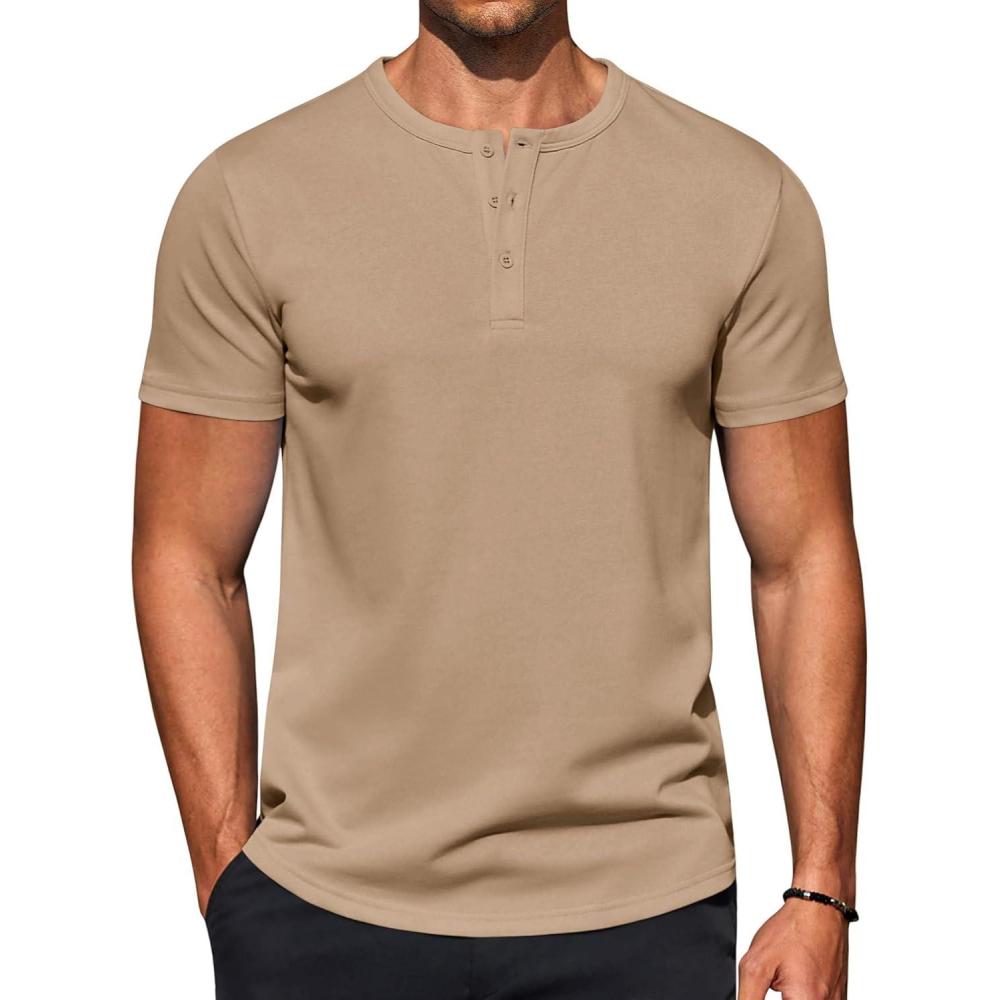 COOFANDY Men’s Casual Henley T-Shirts Summer Short Sleeve Cotton Shirts Basic Button Tee Tops(Sesame)