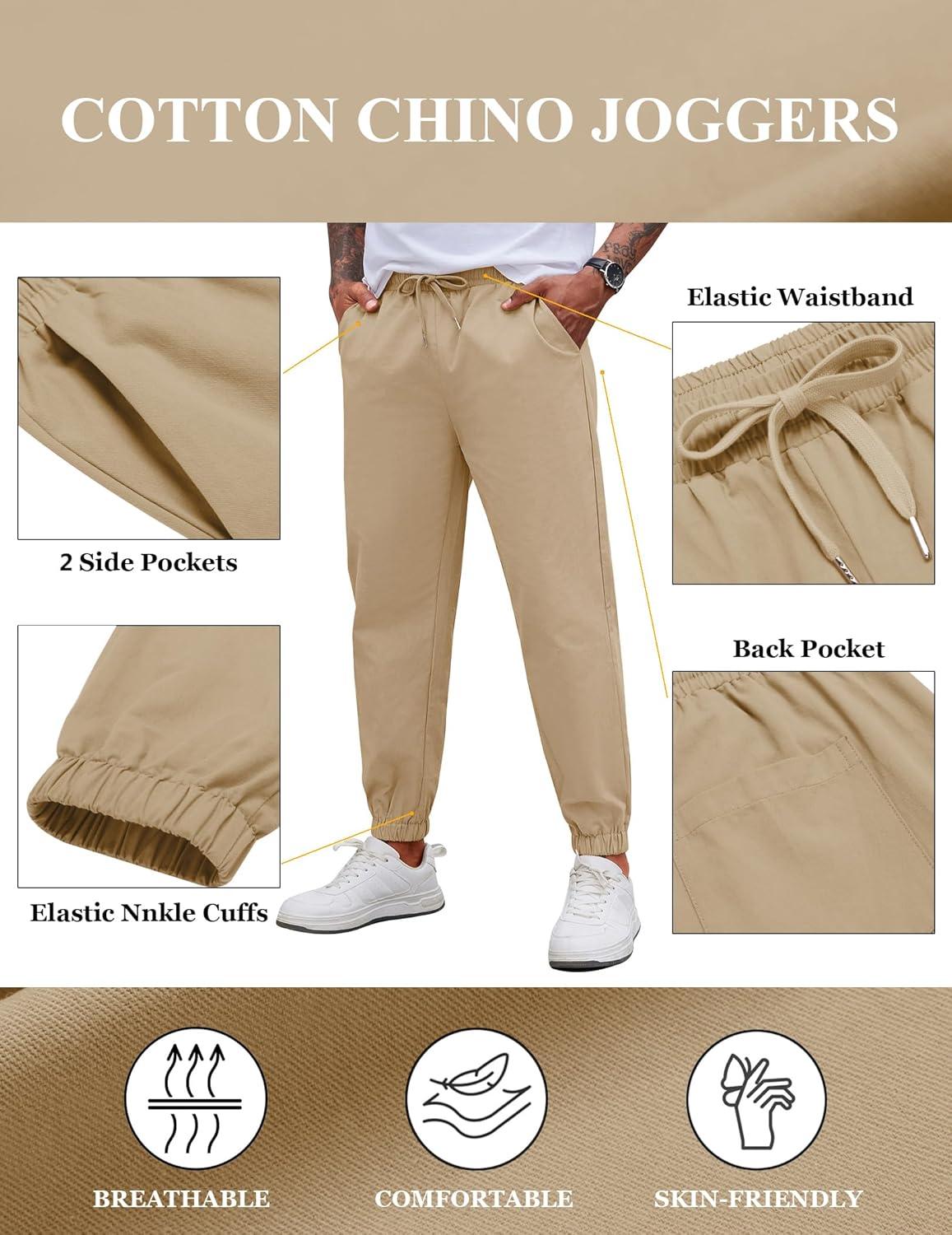 COOFANDY Men’s Casual Joggers Pants Cotton Elastic Waist Drawstring Chino Pants Hiking Outdoor Track Sweatpants(Light Khaki)