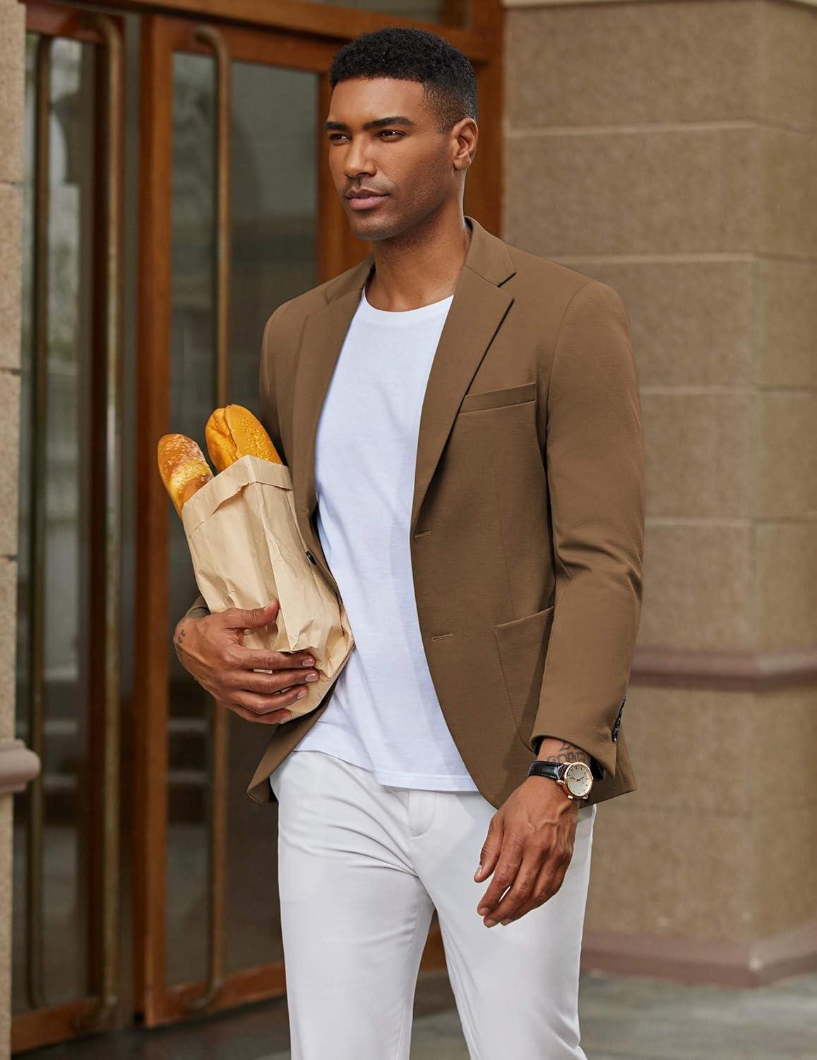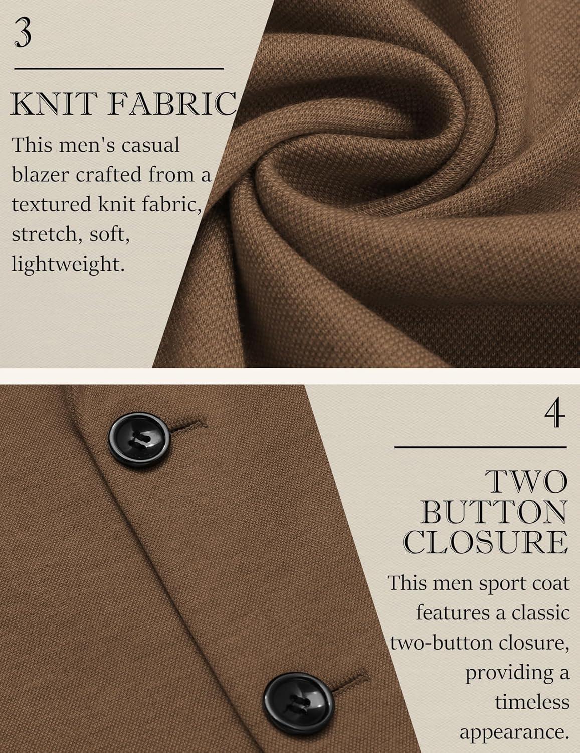 COOFANDY Men’s Casual Knit Blazer Slim Fit Lightweight Sport Coat Stretch Two Button Suit Jacket(Brown)