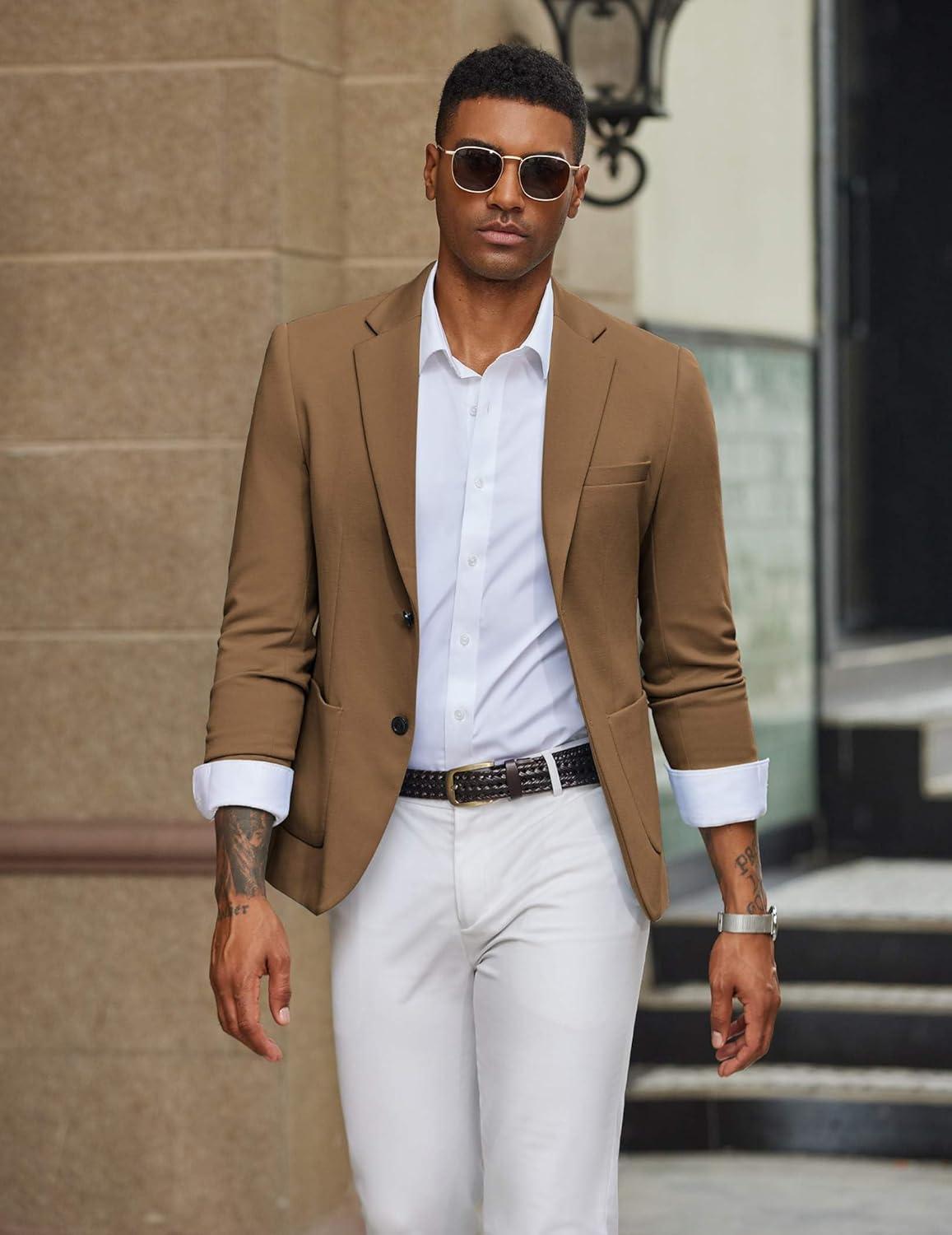 COOFANDY Mens Casual Blazer Knit Sport Coat Lightweight Two Button Suit Jacket(Light Khaki)