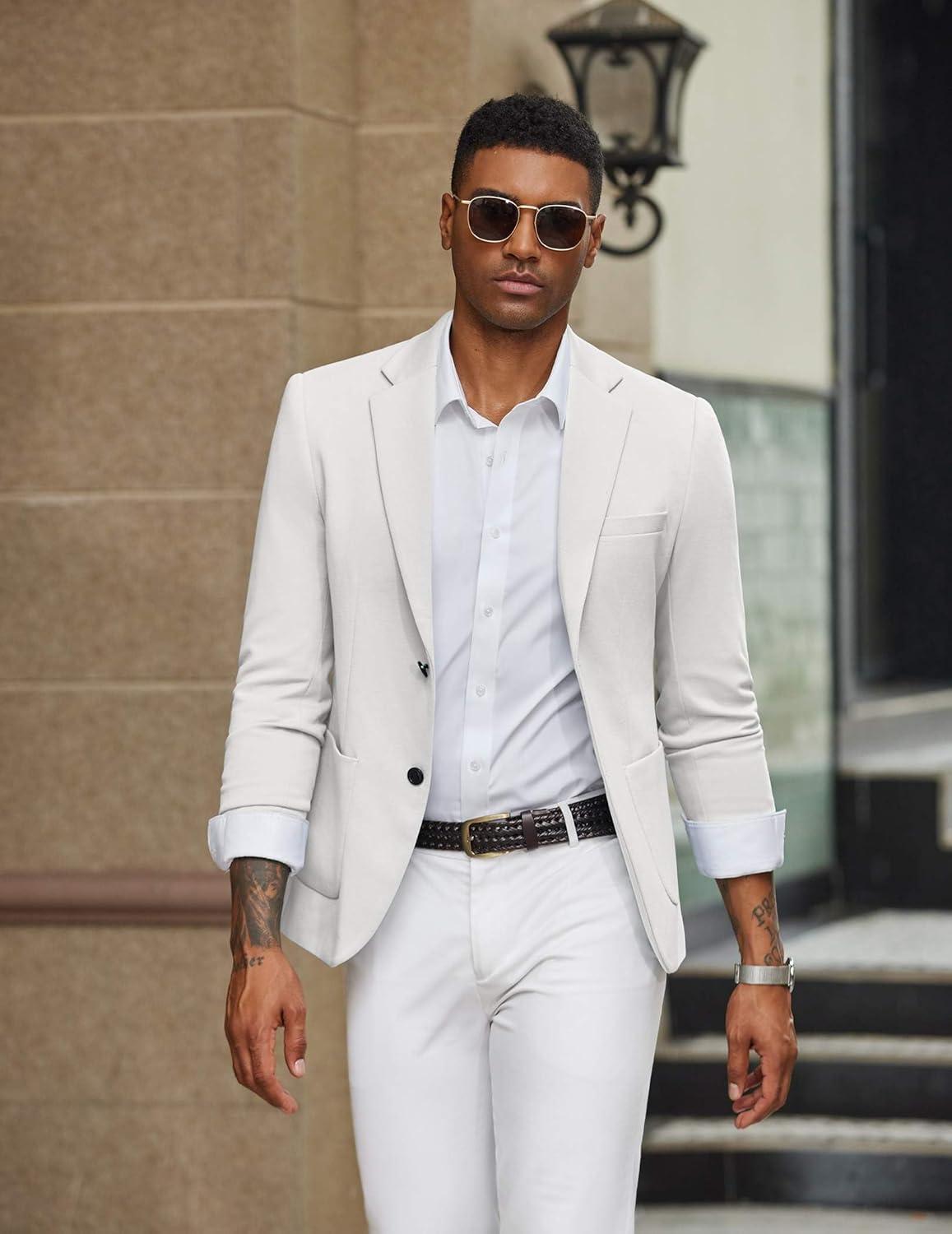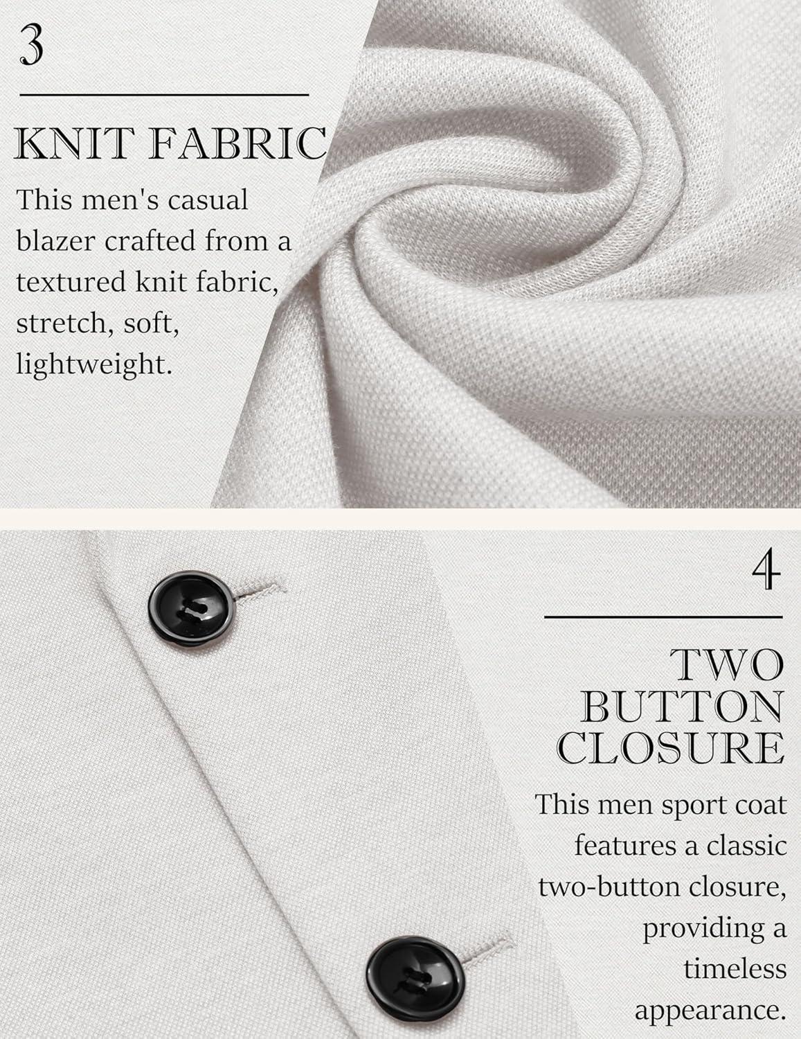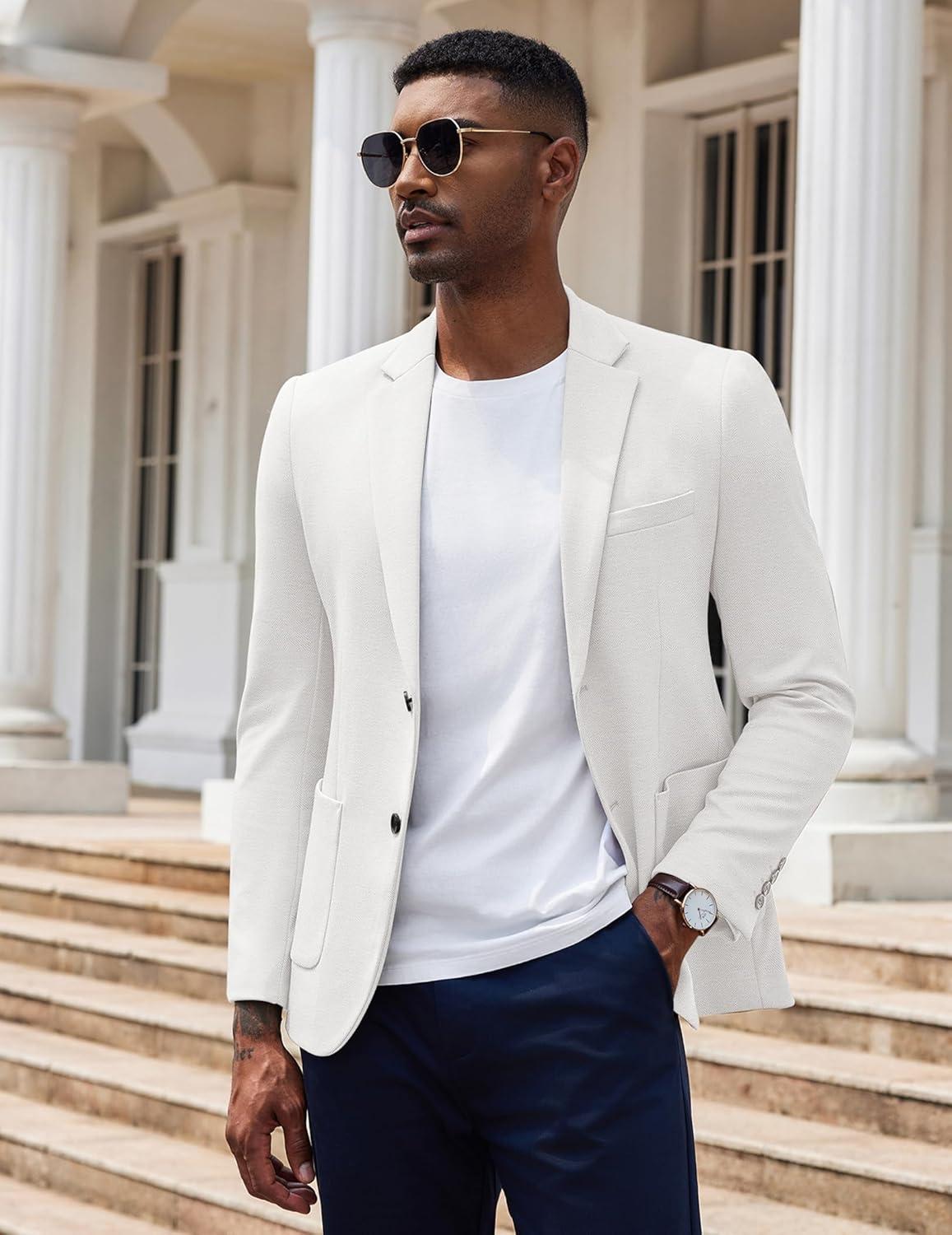 COOFANDY Men’s Casual Knit Blazer Slim Fit Lightweight Sport Coat Stretch Two Button Suit Jacket(White)