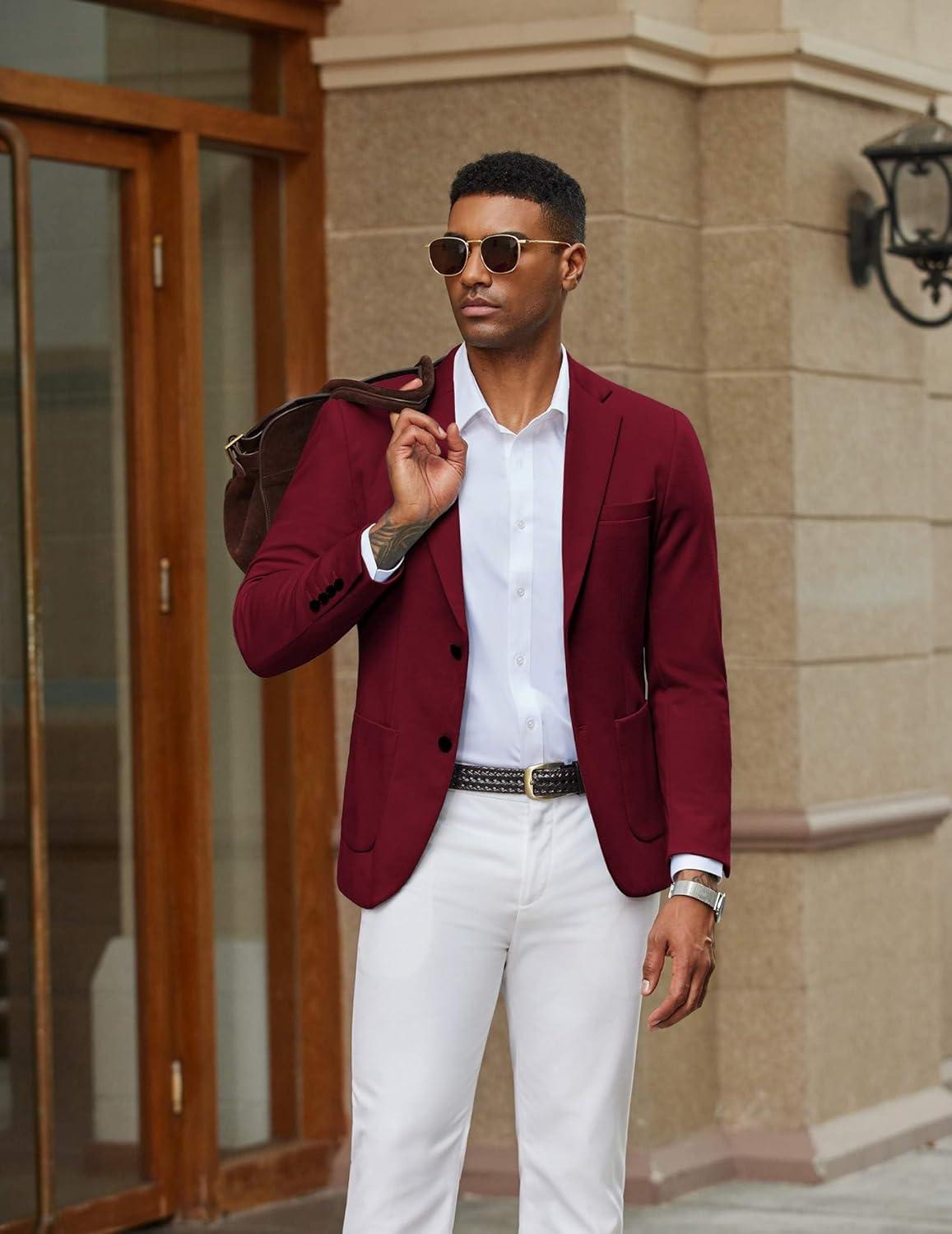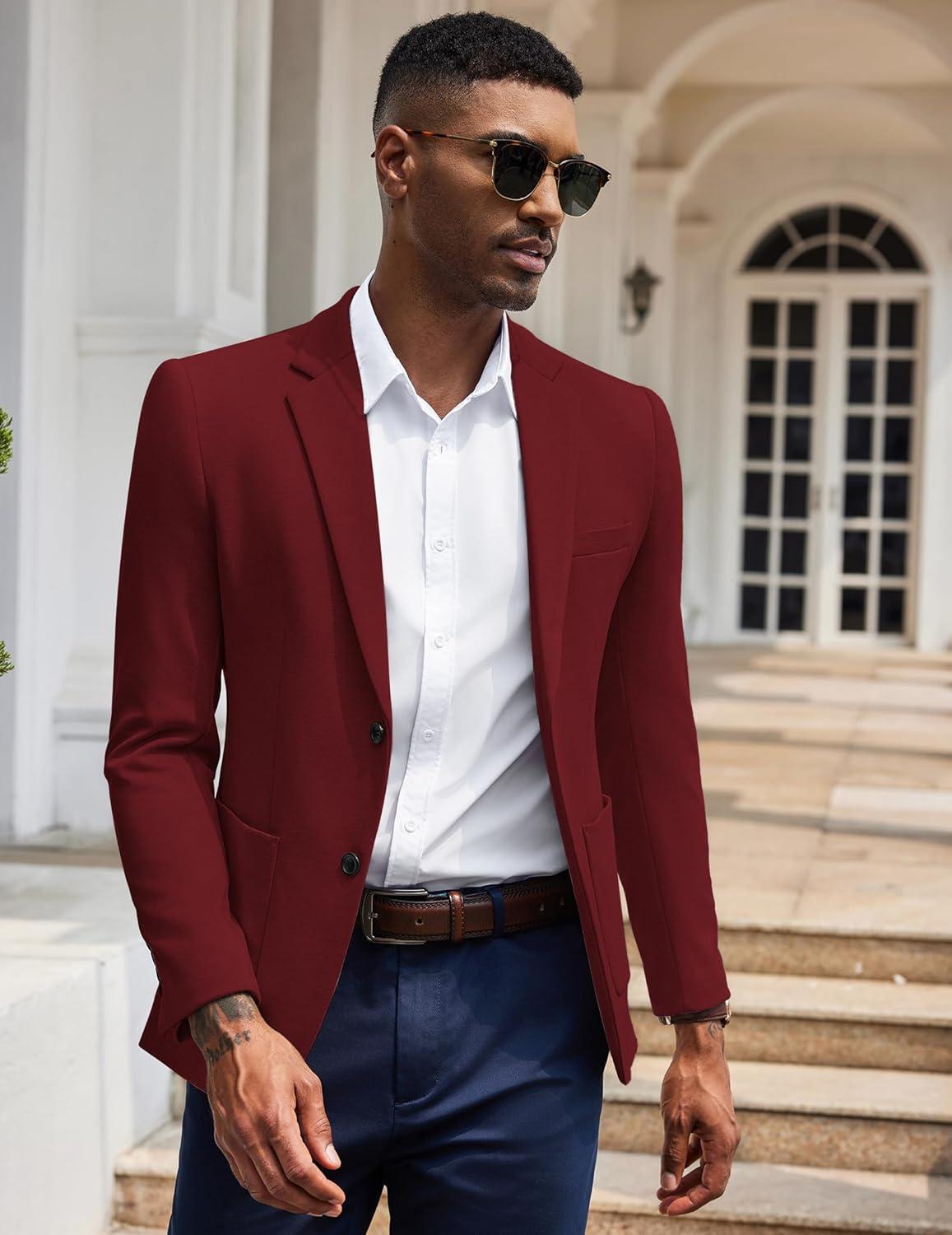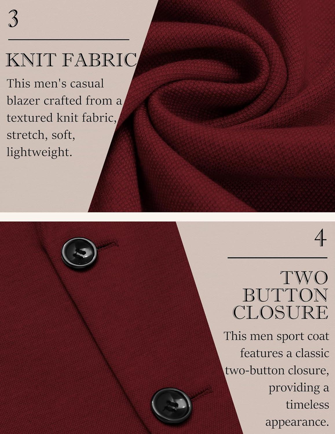 COOFANDY Men’s Casual Knit Blazer Slim Fit Lightweight Sport Coat Stretch Two Button Suit Jacket(Wine Red)