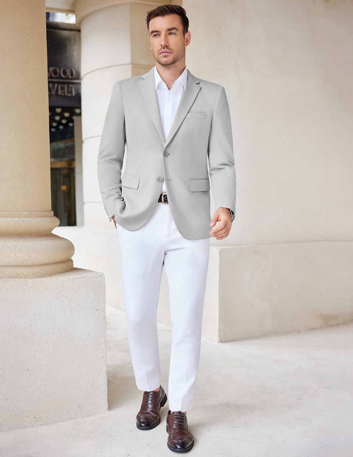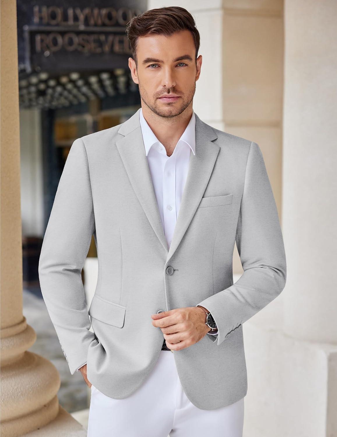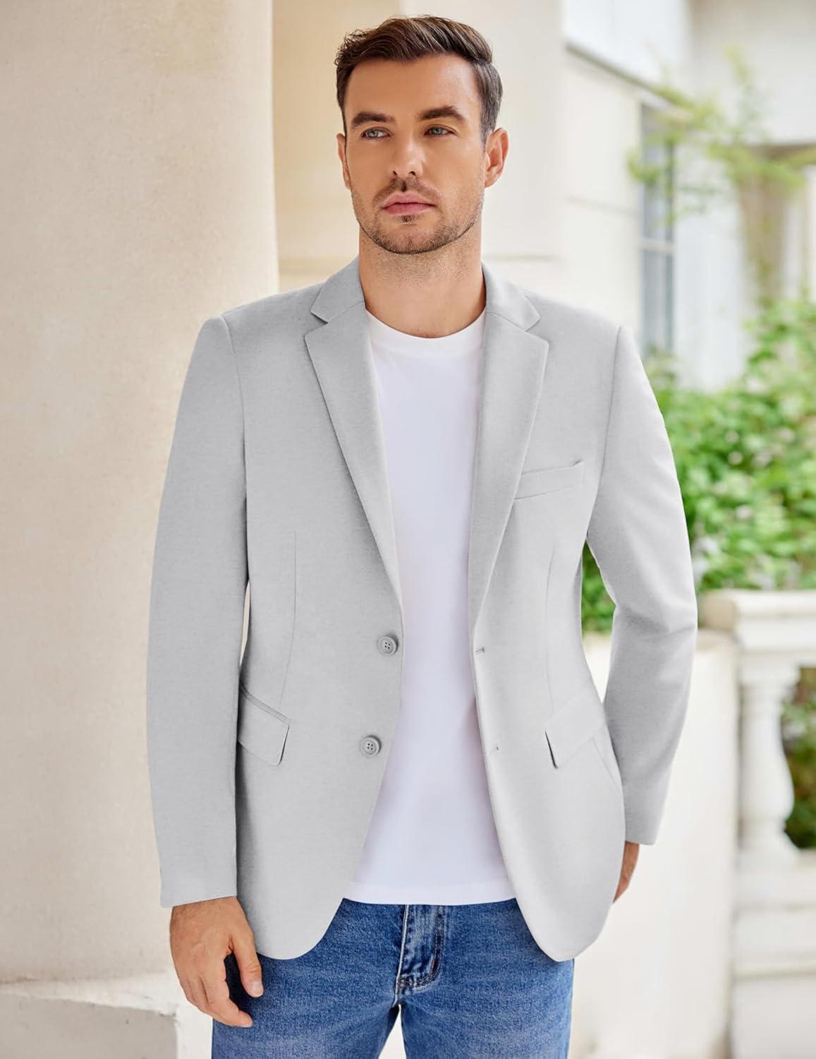 COOFANDY Men’s Casual Knit Blazer Stretch Slim Fit Sport Coat Two Button Lightweight Suit Jackets(Light Heather Grey)