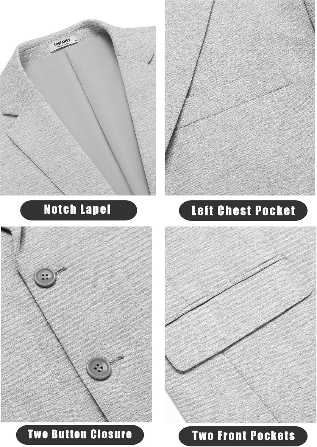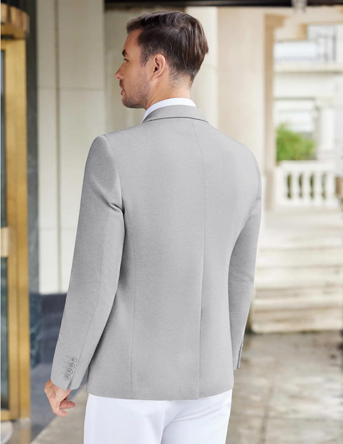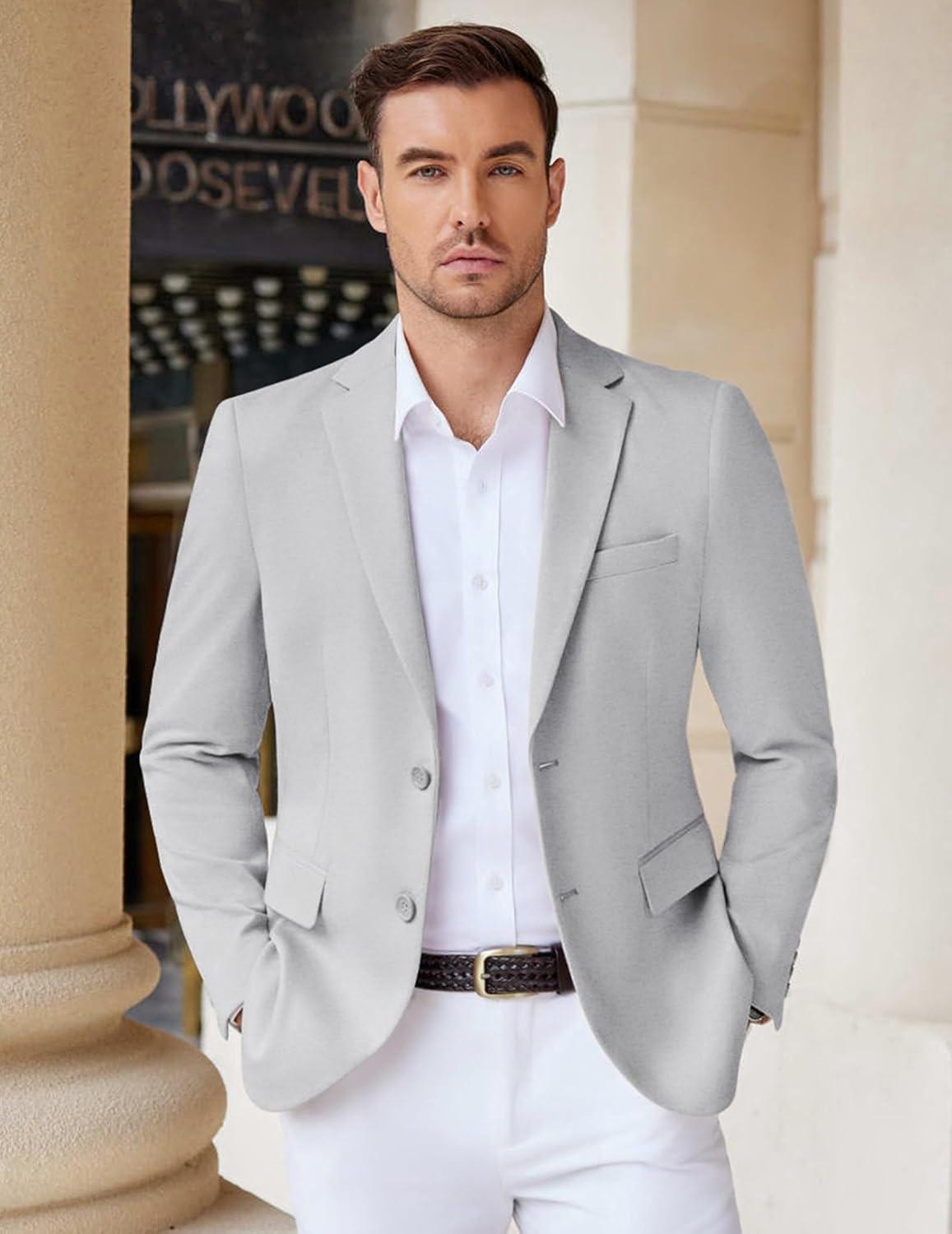 COOFANDY Men’s Casual Knit Blazer Stretch Slim Fit Sport Coat Two Button Lightweight Suit Jackets(Light Heather Grey)