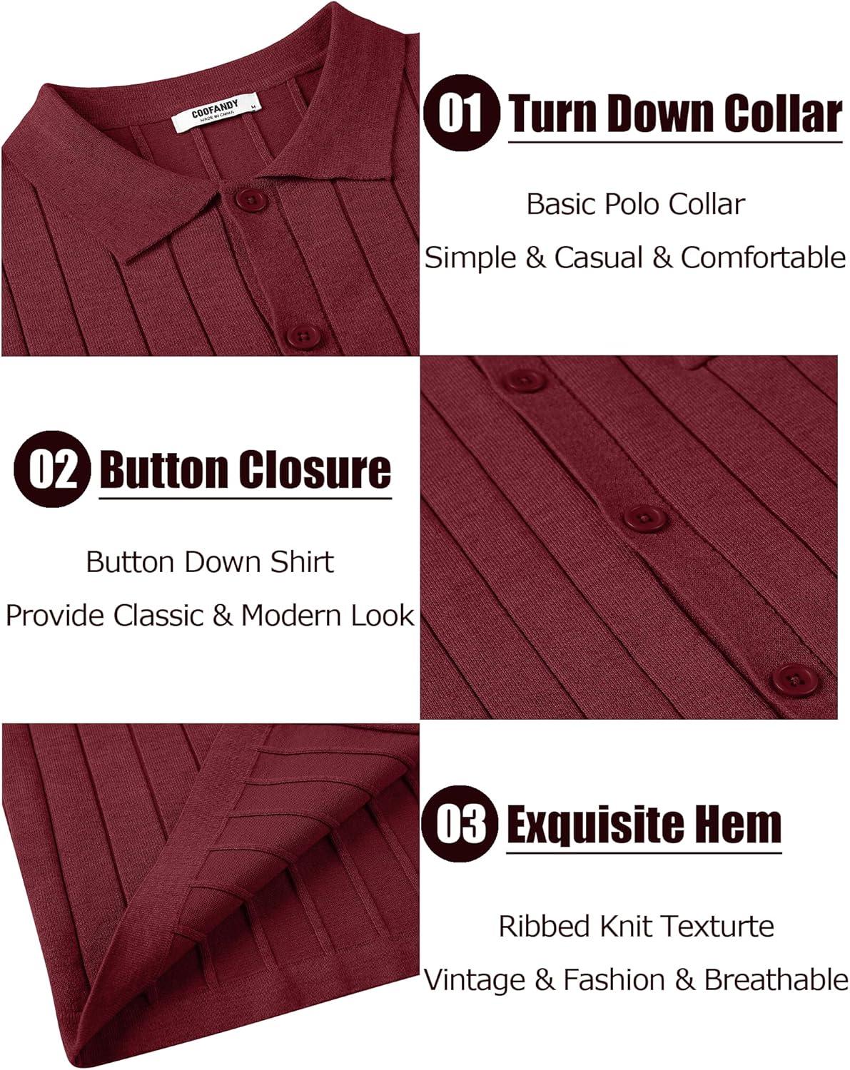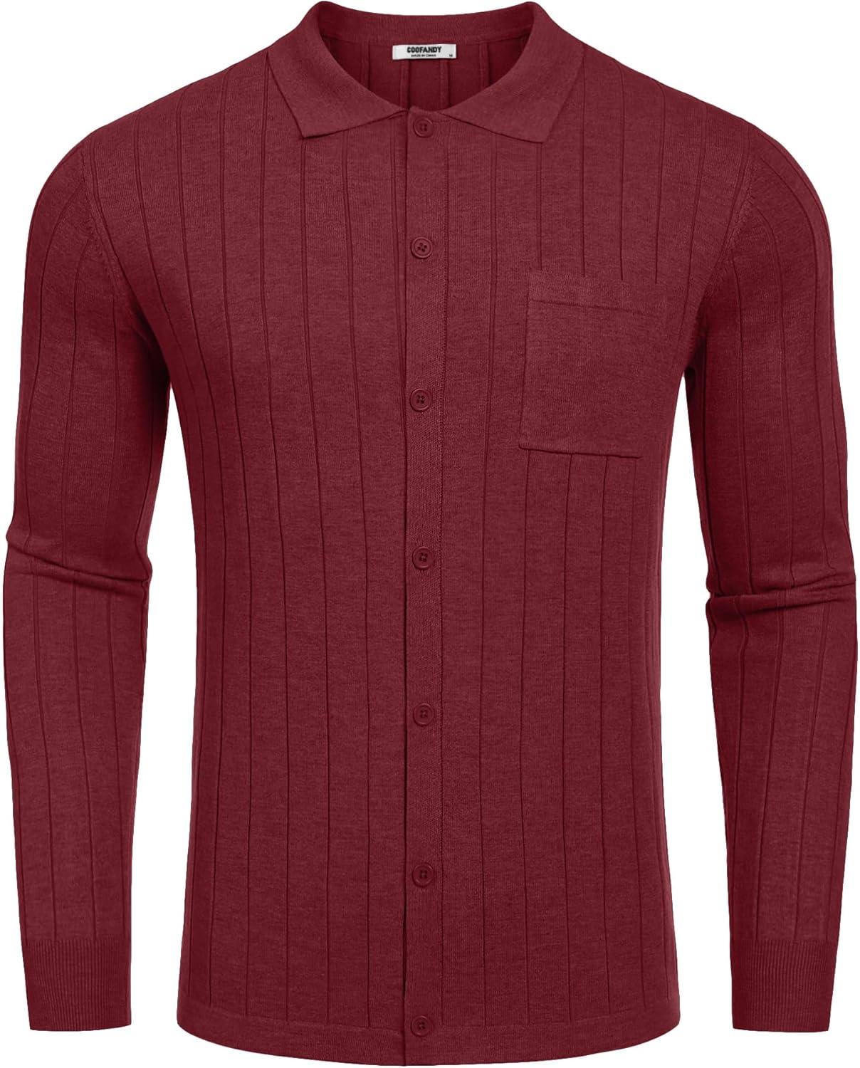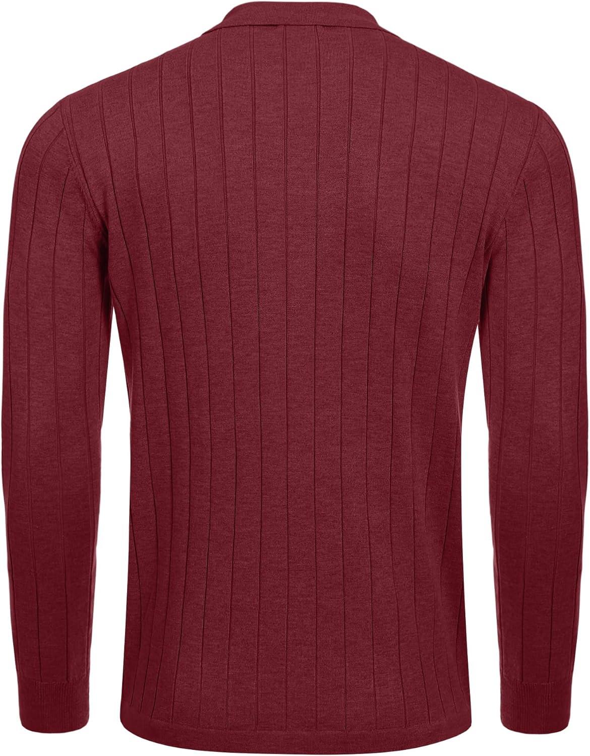 COOFANDY Men’s Casual Knit Polo Shirts Long Sleeve Button Down Sweater Polo Ribbed Cardigan Sweater with Pocket(Wine Red)