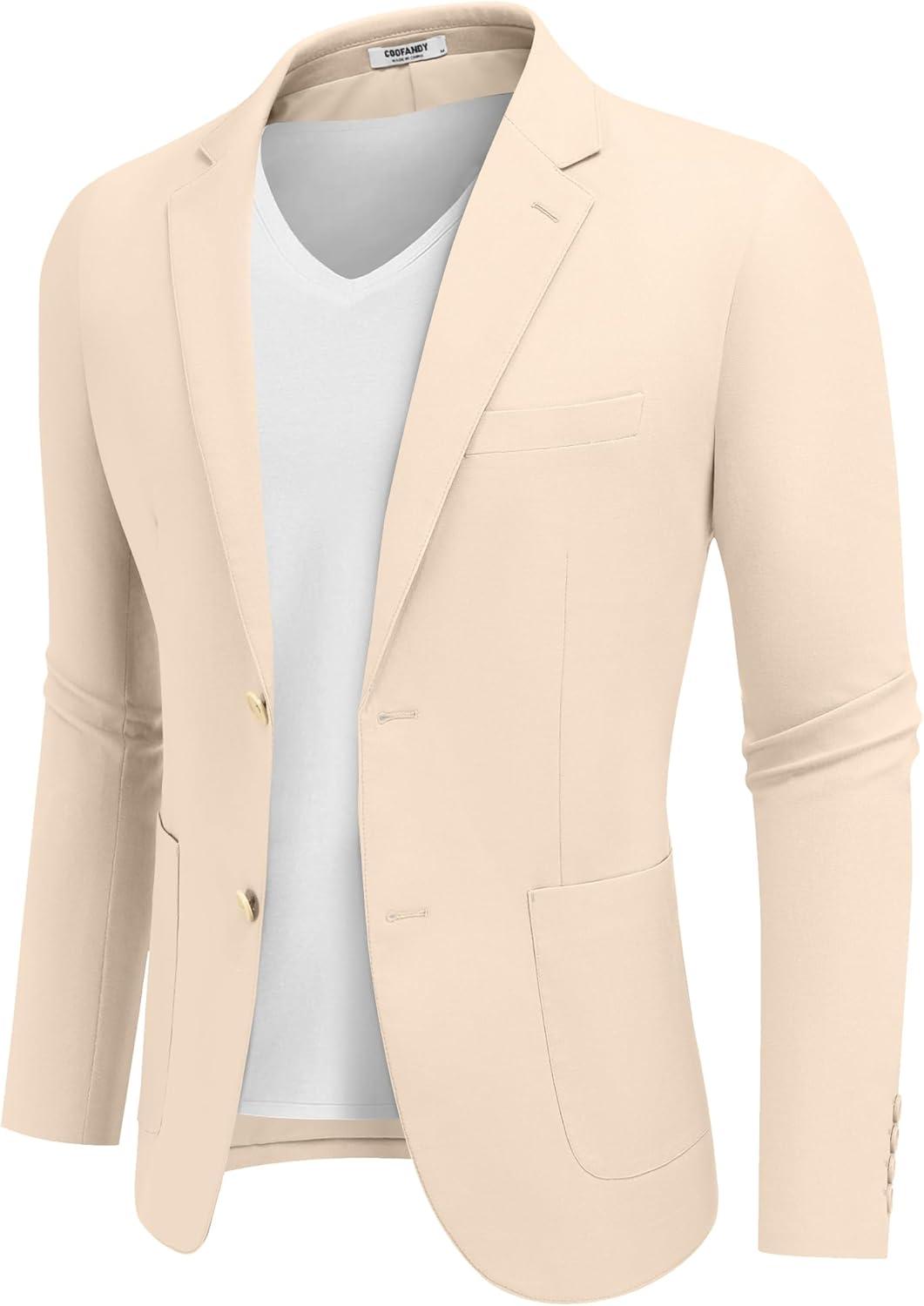 COOFANDY Men’s Casual Linen Blazer Jacket Lightweight Sport Coats Two Button Suit Jackets(Light Khaki)