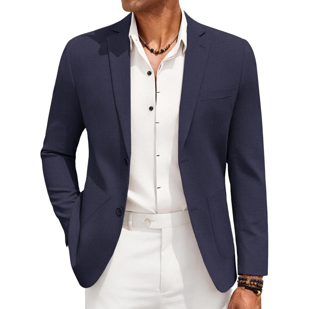 COOFANDY Men’s Casual Linen Blazer Jacket Lightweight Sport Coats Two Button Suit Jackets(Navy Blue)