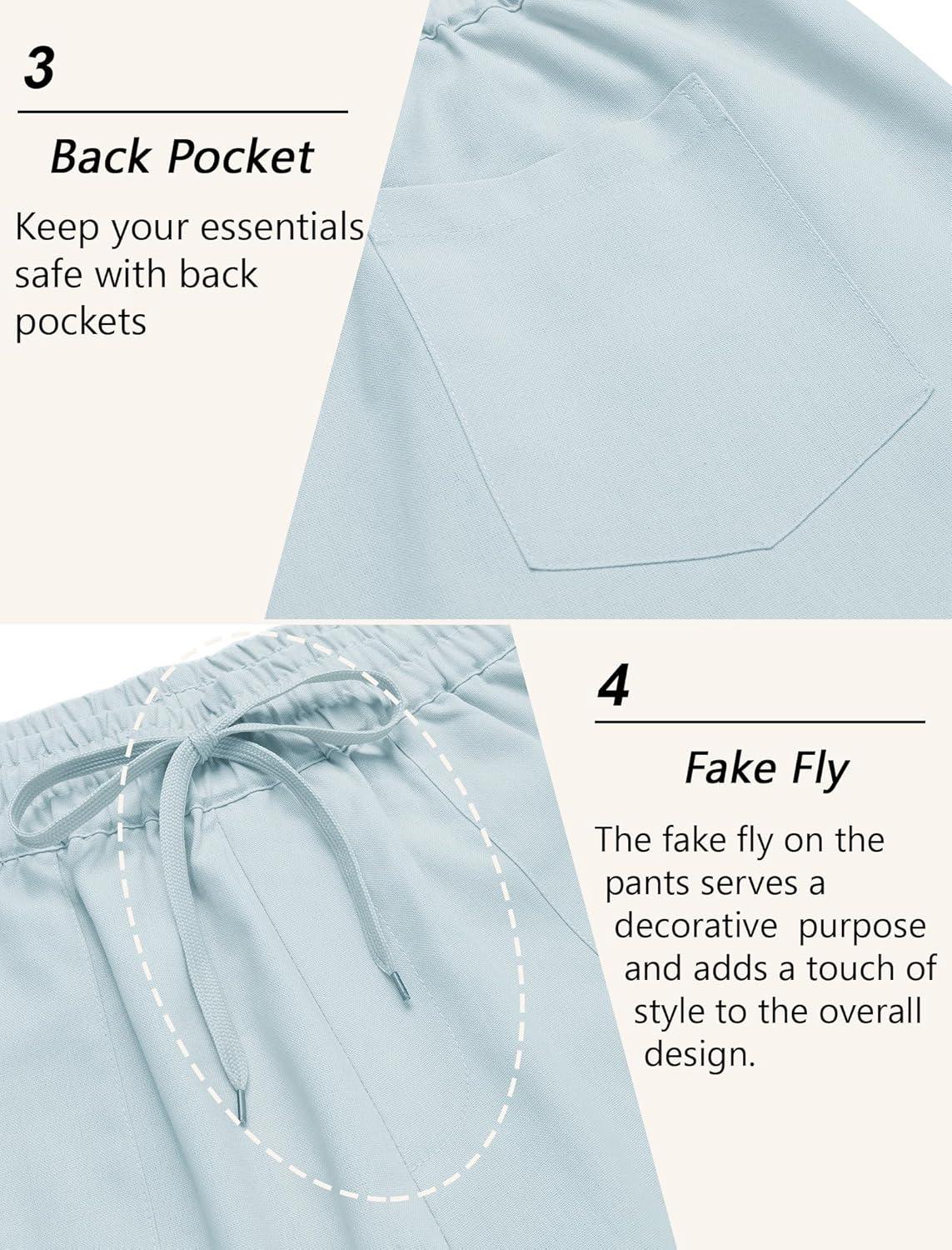 COOFANDY Men’s Casual Linen Pants Elastic Waist Drawstring Yoga Beach Pants Lightweight Loose Fit Trousers with Pockets(Sky Blue)