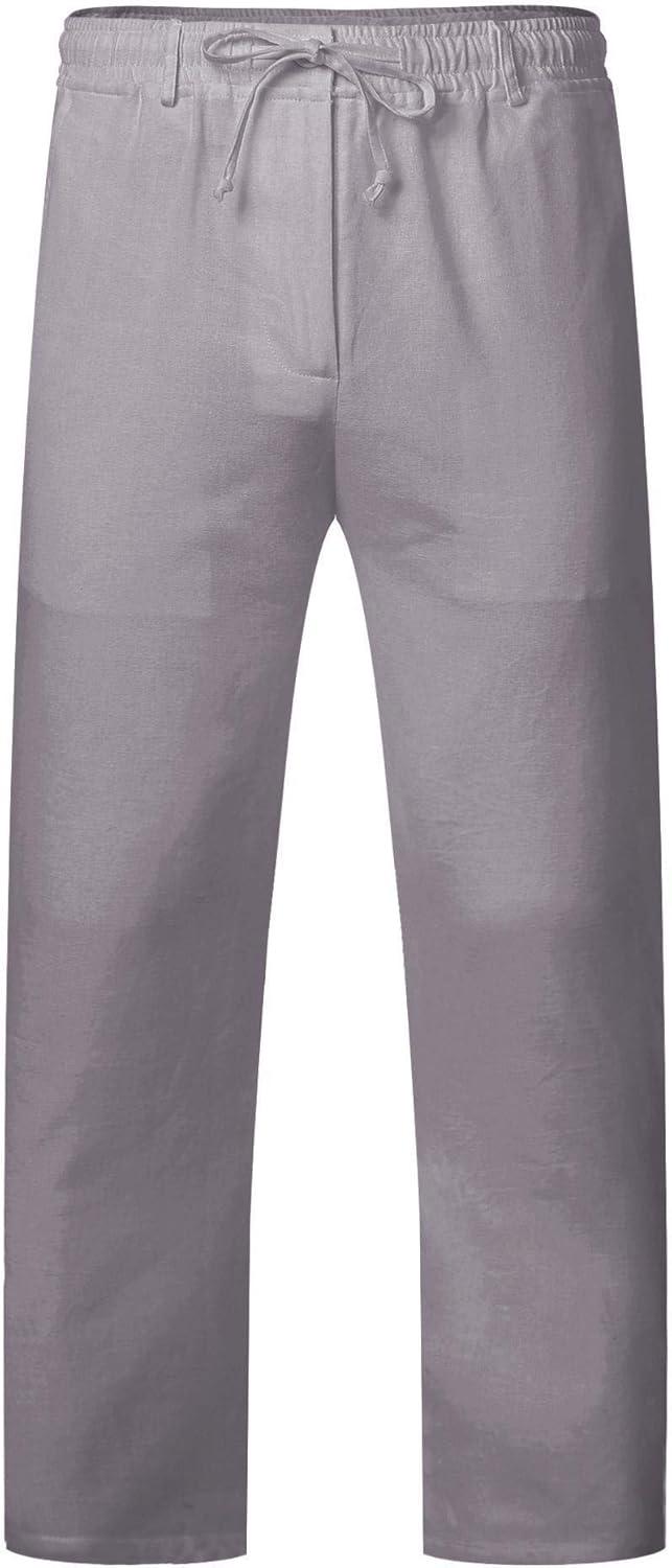 COOFANDY Mens Casual Linen Pants Elastic Waist Linen Pants Drawstring Summer Beach Yoga Linen Trouser(Light Grey)