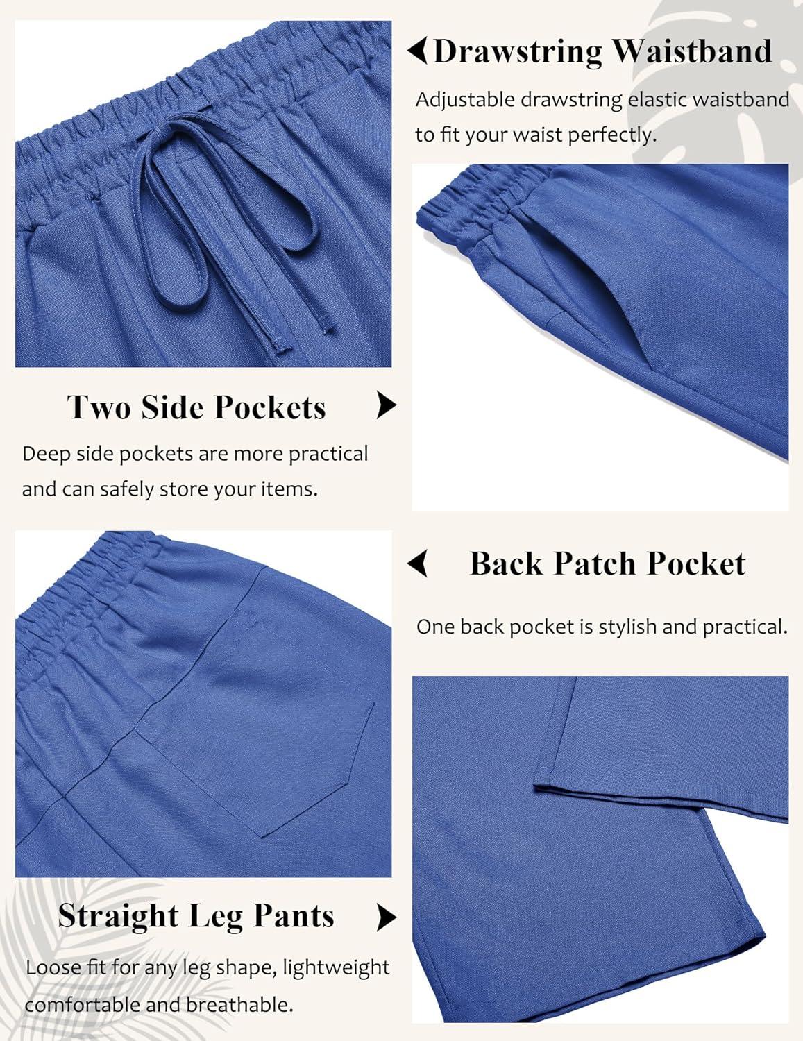 COOFANDY Men’s Casual Linen Pants Loose Fit Elastic Waist Drawstring Lightweight Pant Summer Beach Trousers(Blue)