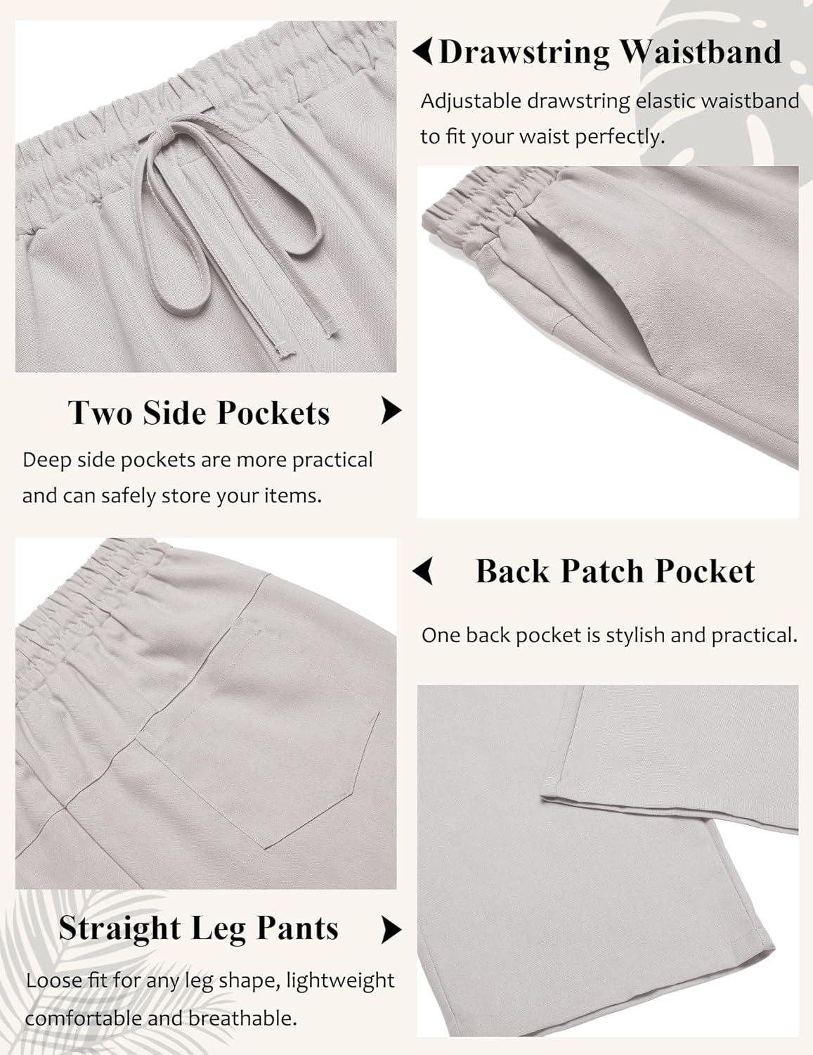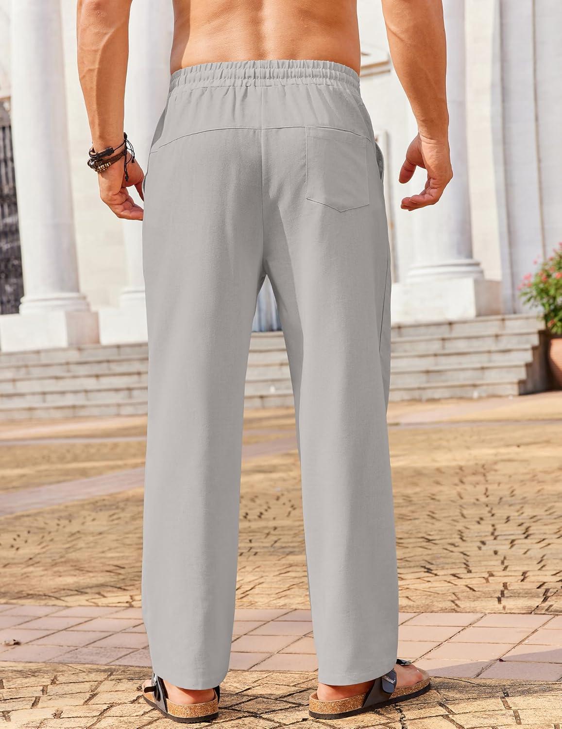 COOFANDY Men’s Casual Linen Pants Loose Fit Elastic Waist Drawstring Lightweight Pant Summer Beach Trousers(Light Grey)