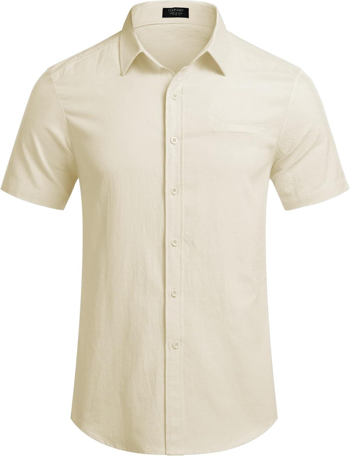 COOFANDY Mens Casual Linen Shirt Short Sleeve Button Down Shirt Summer Beach Hawaiian Shirts(Beige)