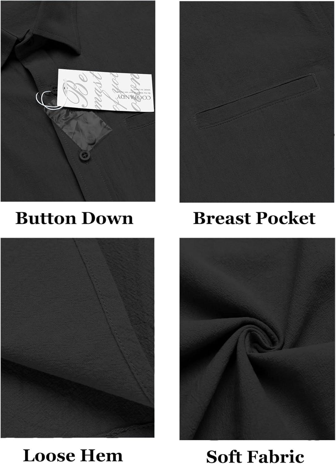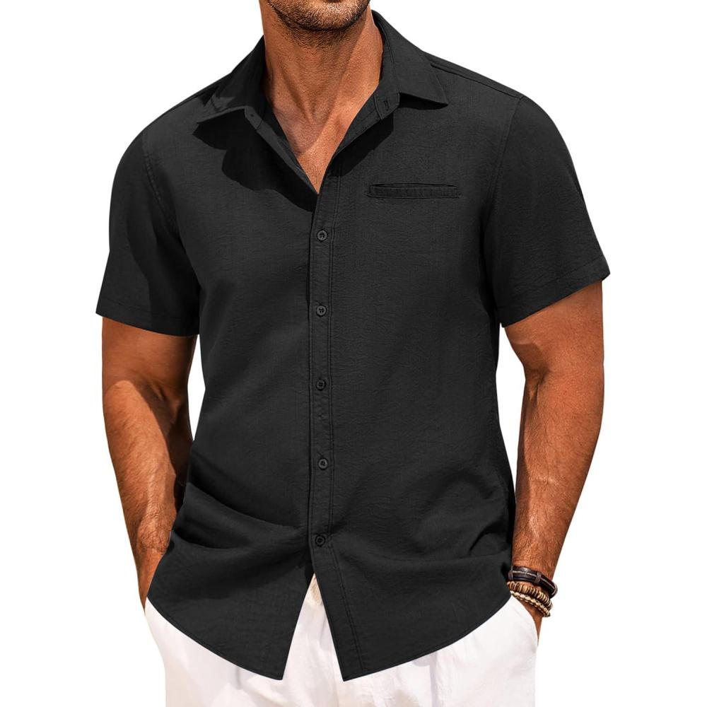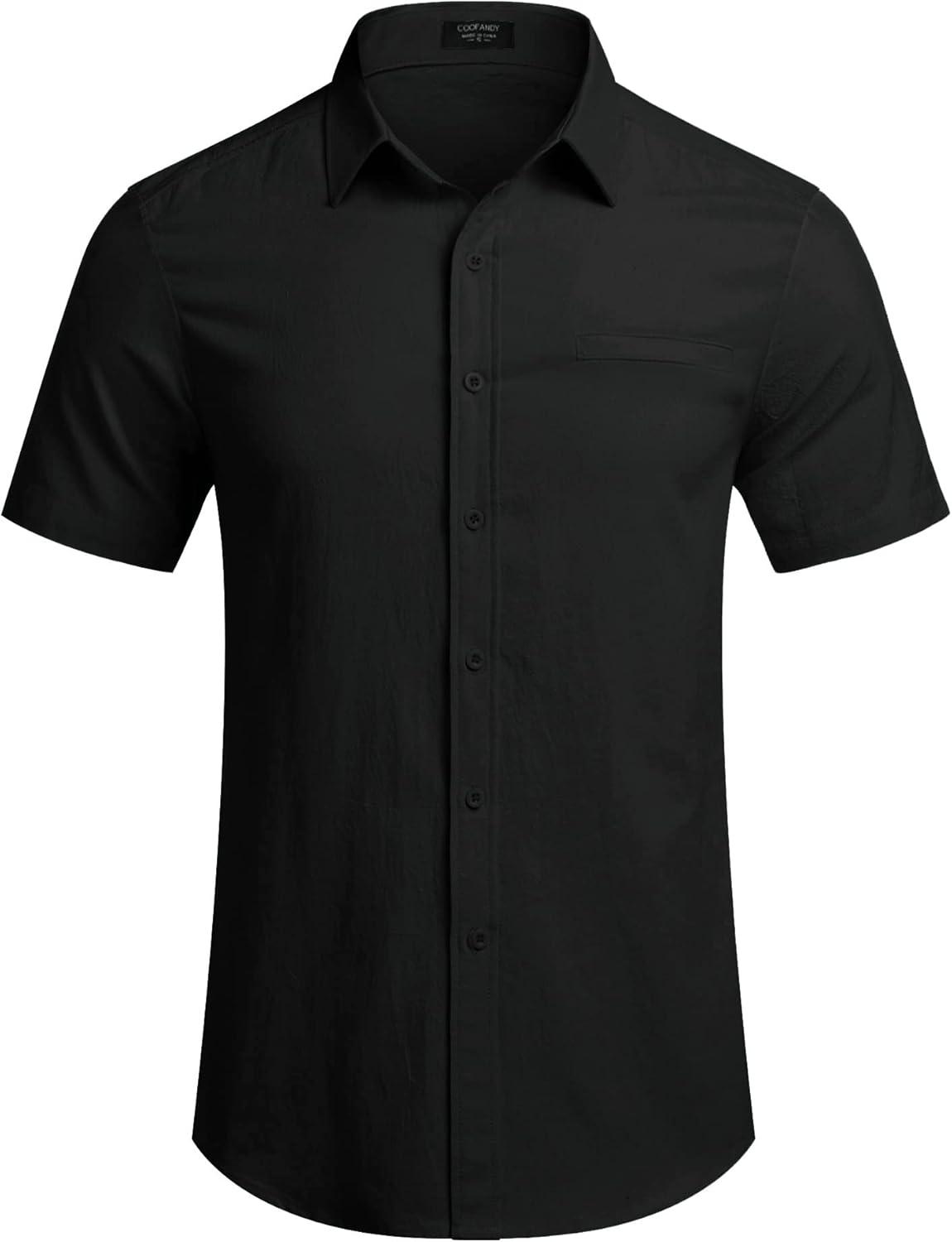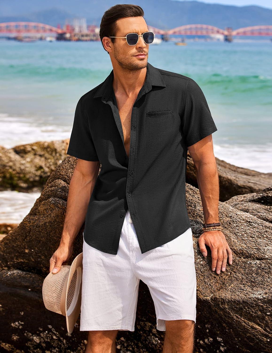 COOFANDY Mens Casual Linen Shirt Short Sleeve Button Down Shirt Summer Beach Hawaiian Shirts(Black)