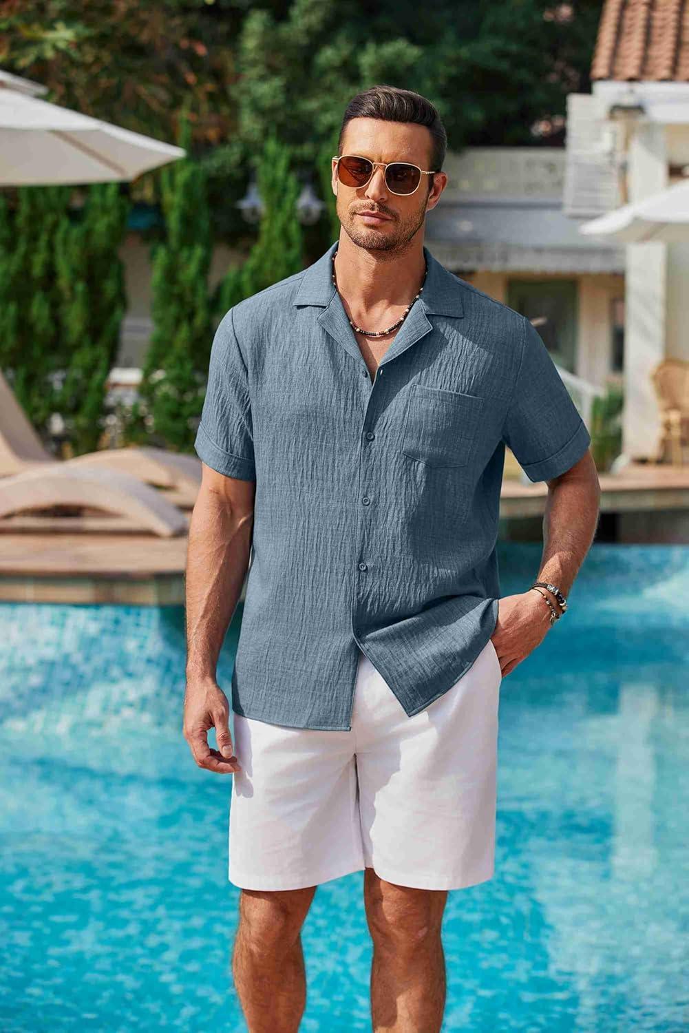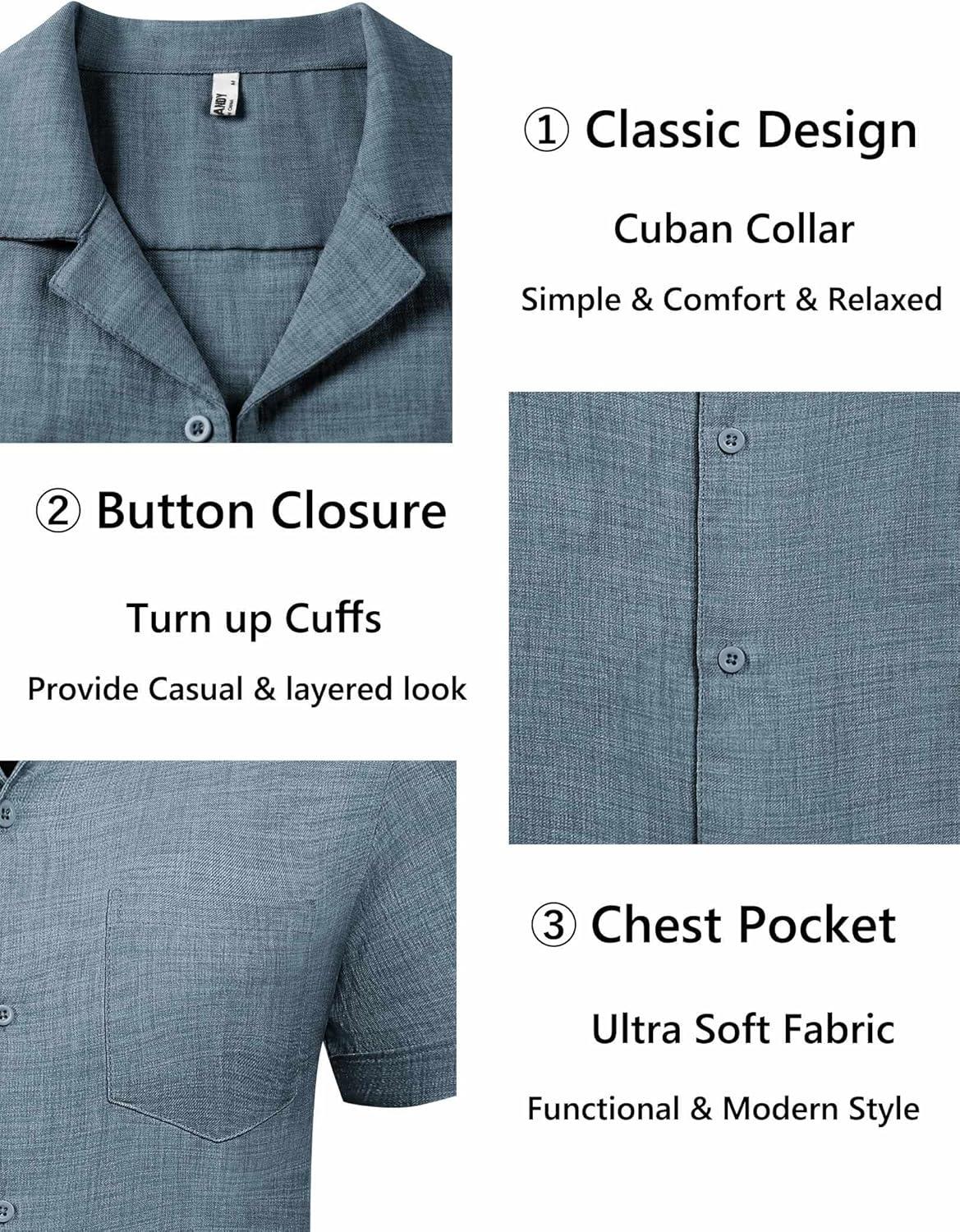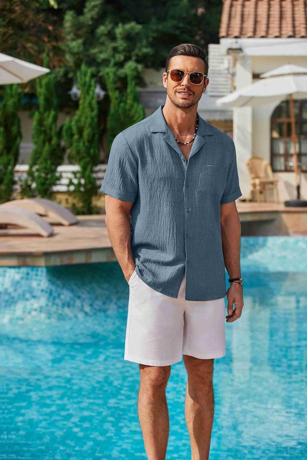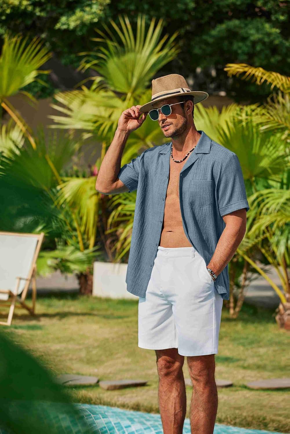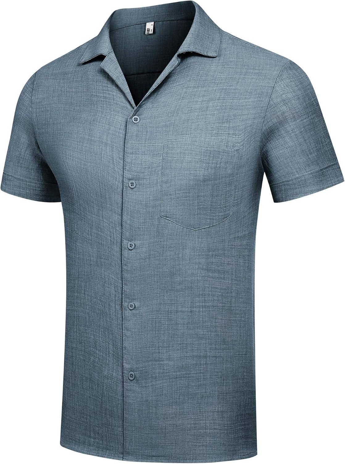 COOFANDY Mens Casual Linen Shirt Short Sleeve Button Down Shirt Summer Beach Hawaiian Shirts(Dark Blue)