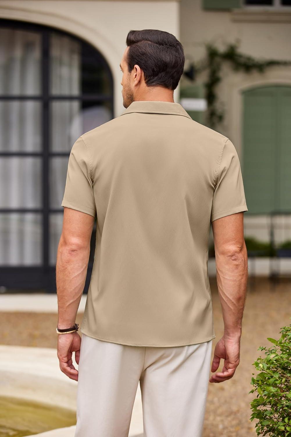 COOFANDY Mens Casual Linen Shirt Short Sleeve Button Down Shirt Summer Beach Hawaiian Shirts(Khaki)