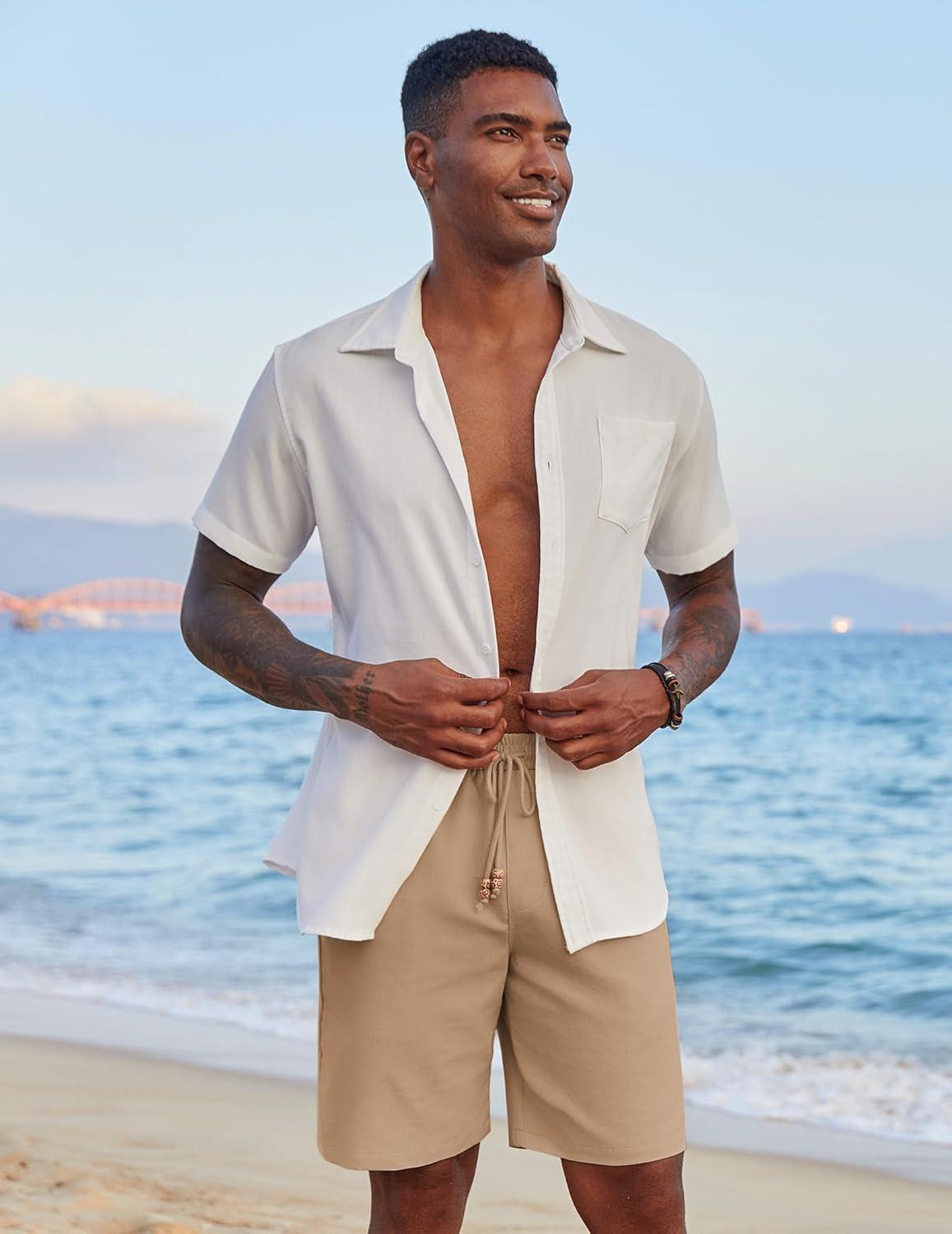 Be the first to review “COOFANDY Mens Casual Linen Shorts Elastic Waist Drawstring Loose Fit Summer Beach Vacation Shorts with Pockets(Dark Khaki)” Cancel reply