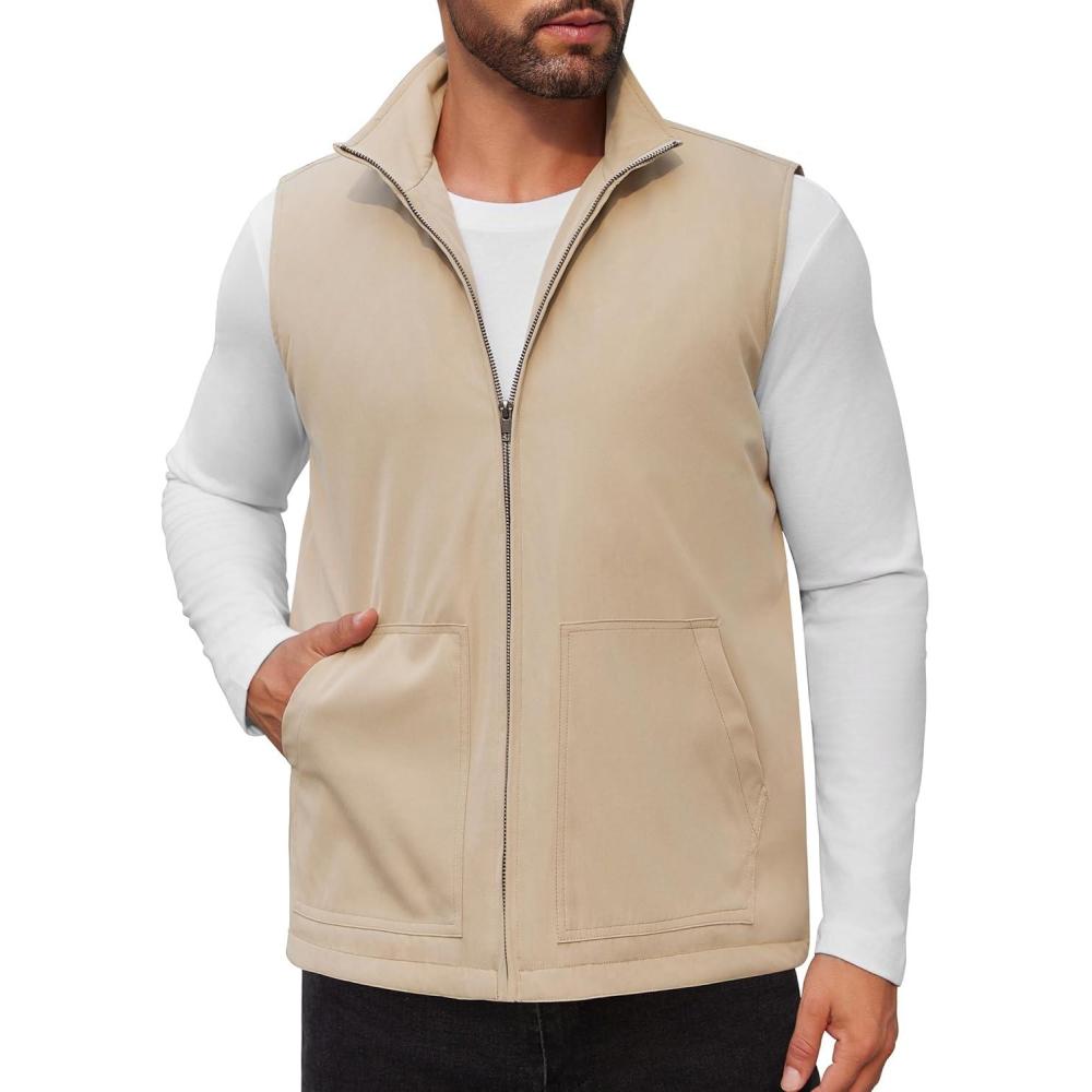 COOFANDY Men’s Casual Outerwear Vest Lightweight Zip Up Sleeveless Jacket Outdoor Work Hiking Travel Golf Vest with Pockets(Khaki)