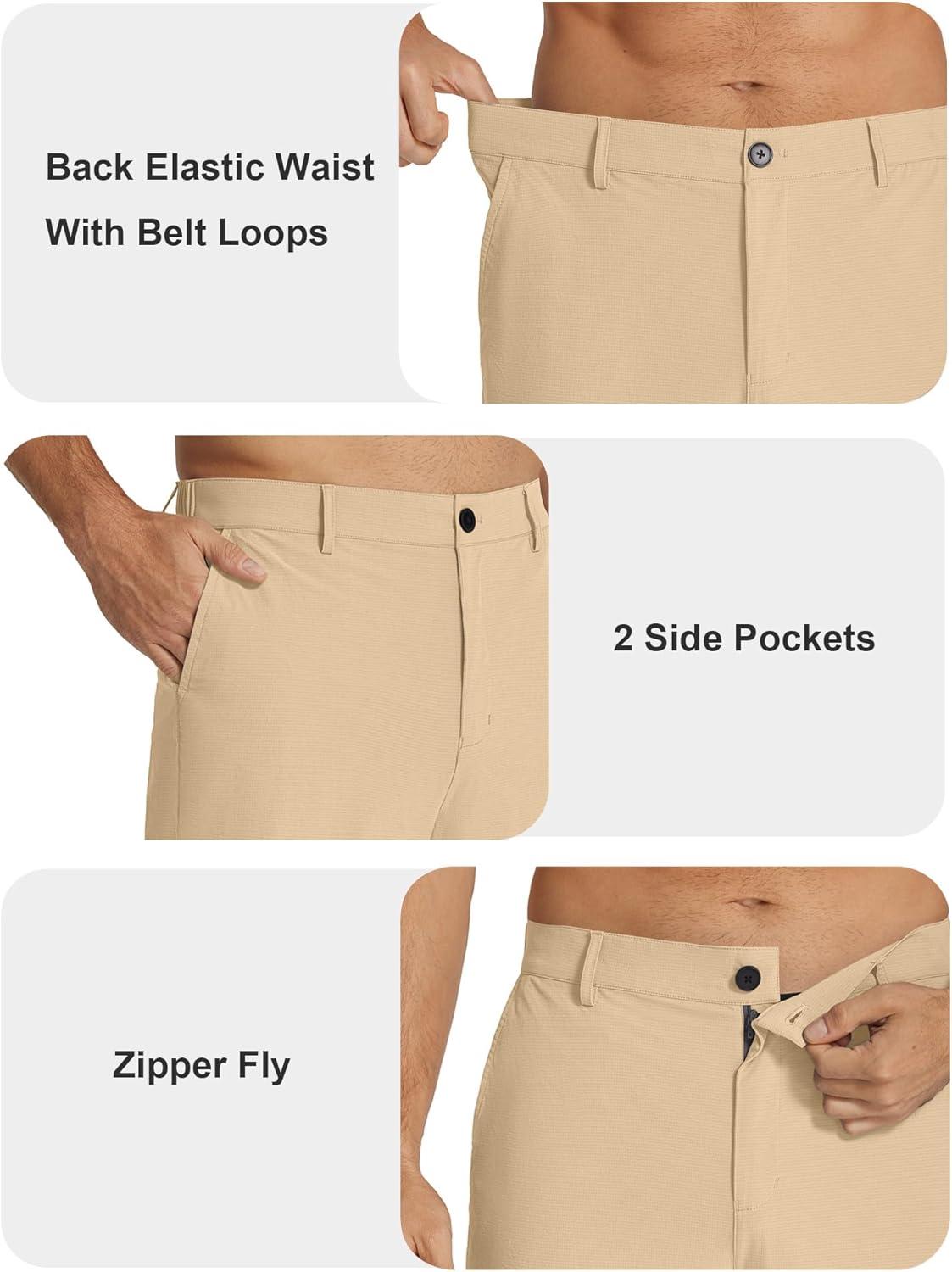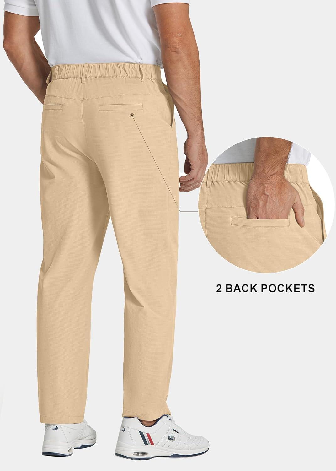 COOFANDY Men’s Casual Pants Classic Fit Flat Front Pants Lightweight Elastic Waist Golf Trousers with Pockets(Light Khaki)
