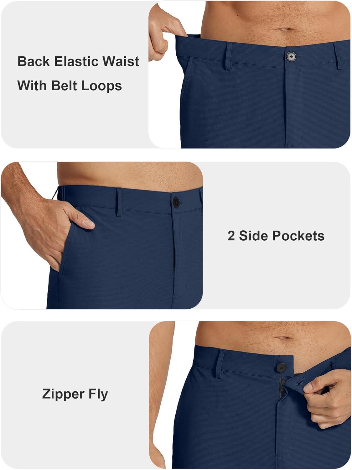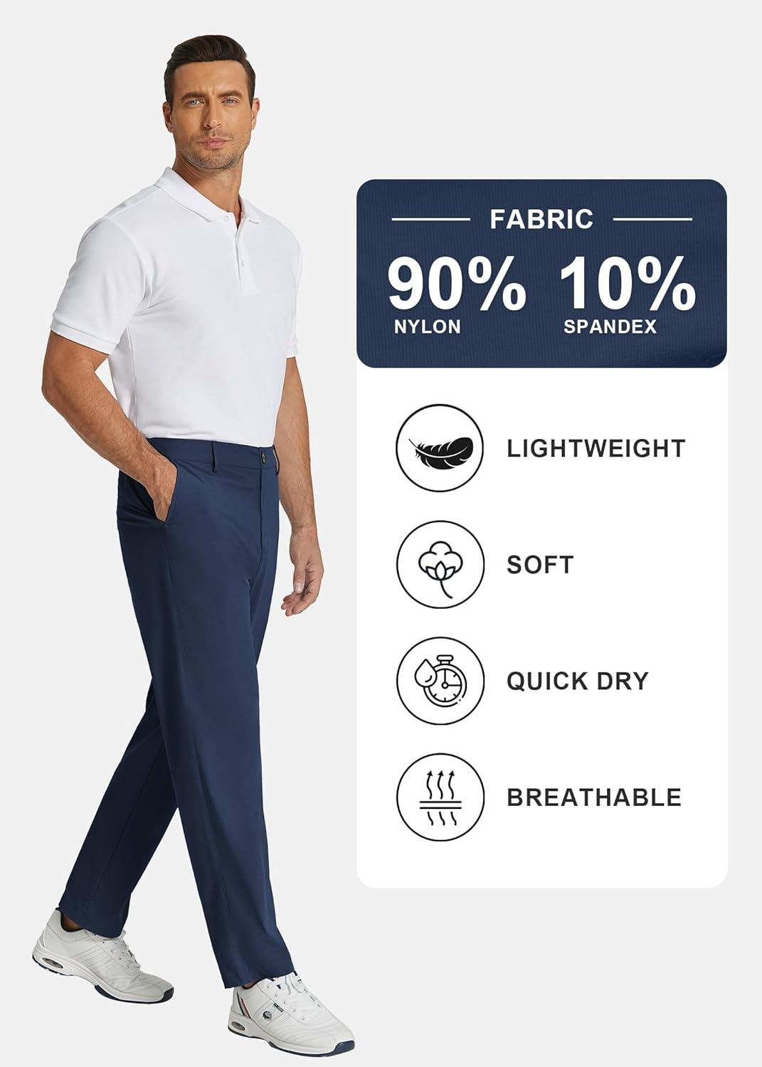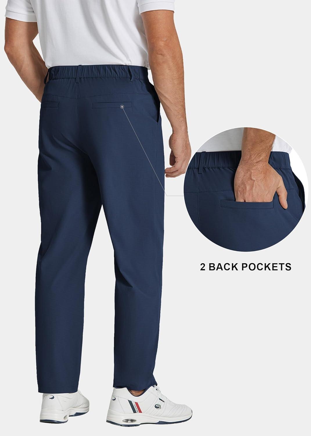 COOFANDY Men’s Casual Pants Classic Fit Flat Front Pants Lightweight Elastic Waist Golf Trousers with Pockets(Navy Blue)